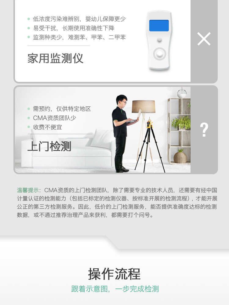 比起上门检测的高成本,这种取样检测非常方便,性价比又高,客服态度很好,过几个月会再来检测一次。