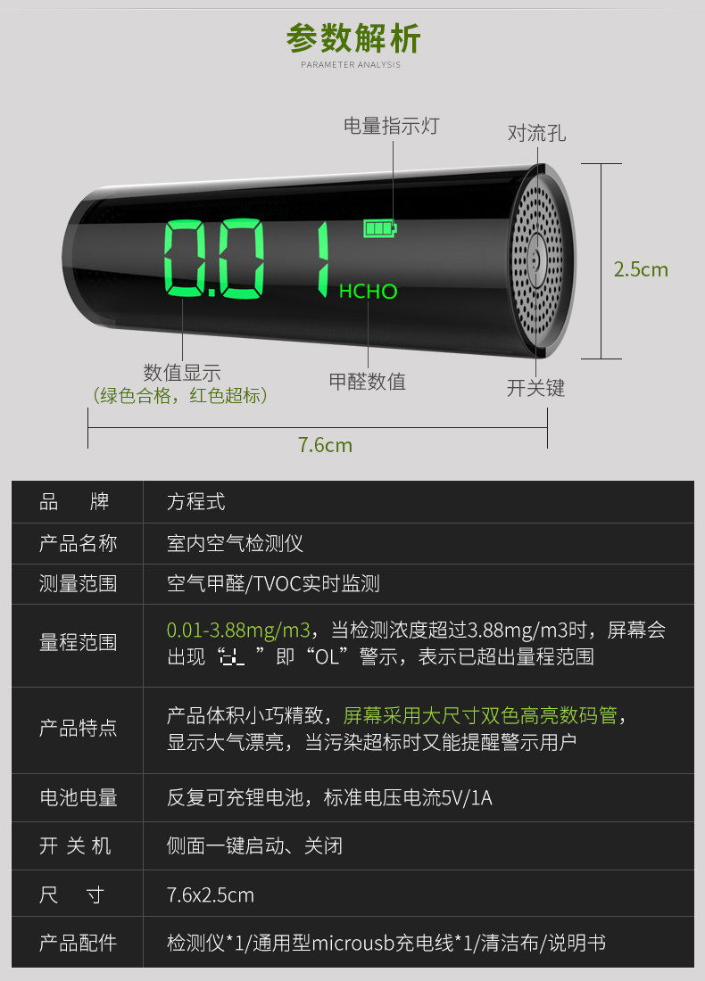 方程式专业甲醛检测仪器家用测甲醛室内空气质量自监测试仪量盒