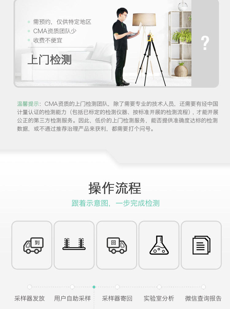 正好老家新房要装修,以前曾经买过他们的产品,销声匿迹那么久想不到出新品啦。不过使用起来还是老样子,挺方便的,寄过去没多久就收到通知出报告了,没要寄原件,不过手机上看扫描的,也蛮清晰,就是有的房间又超标了~~~~~~