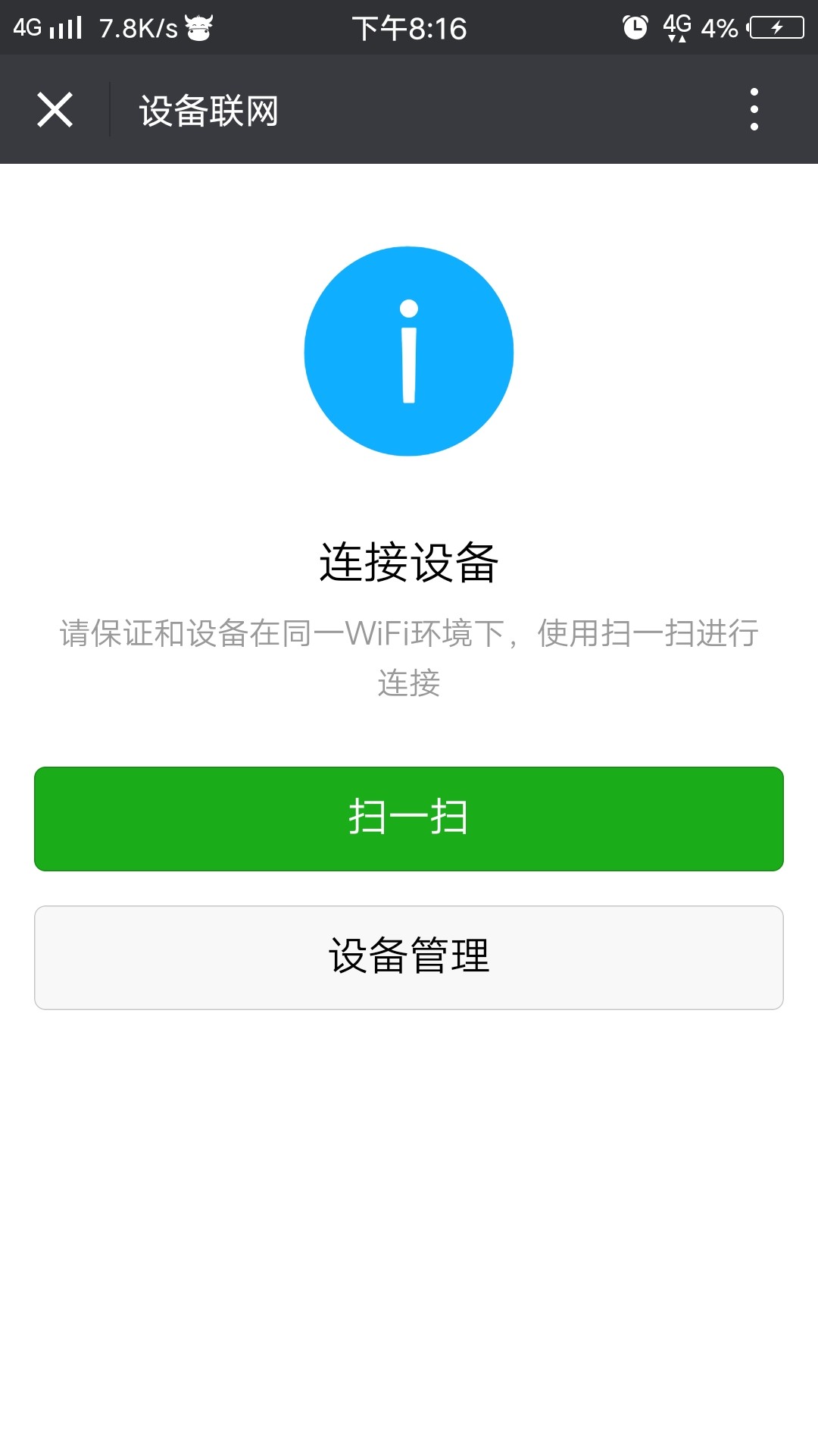 4、 点击更多菜单,进入-> 设备联网,点击扫一扫。