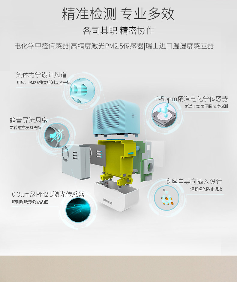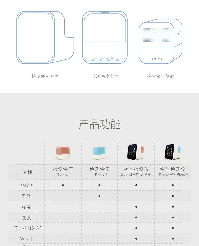 分体设计,比较独特,也很实用,西门子这款性价比很高,但没有挥发有机物检测和二氧化碳检测。已经很不错了,赞??