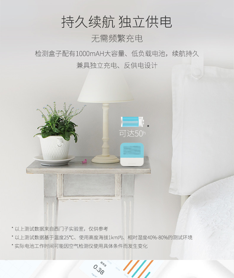 要一直插着电使用,检测数据一直没什么变化,无论放在哪里,数值波动都不大,不管房间有没有开窗通风透气,或者放在味道很大的柜子里,数值都没有改变,所以,真的不知道有没有检测出来,到底测得准不准确???