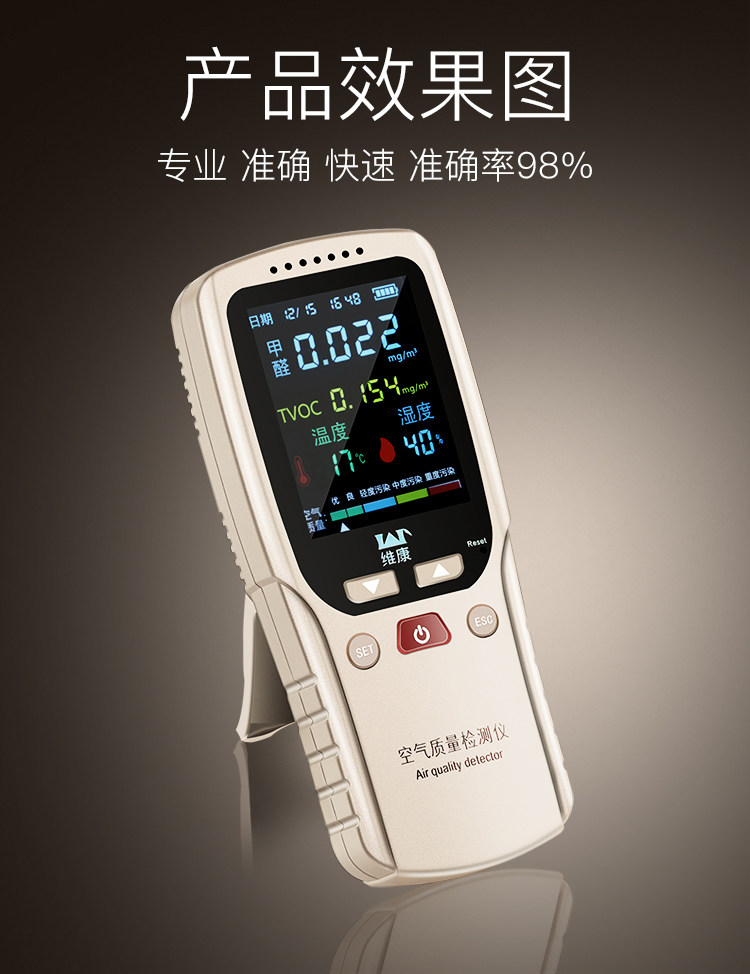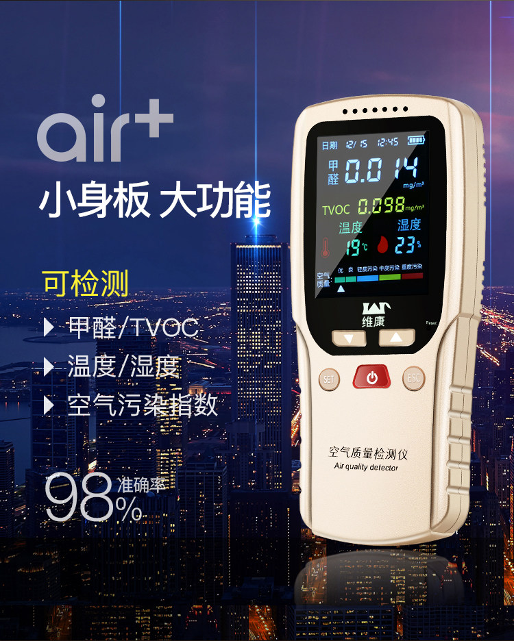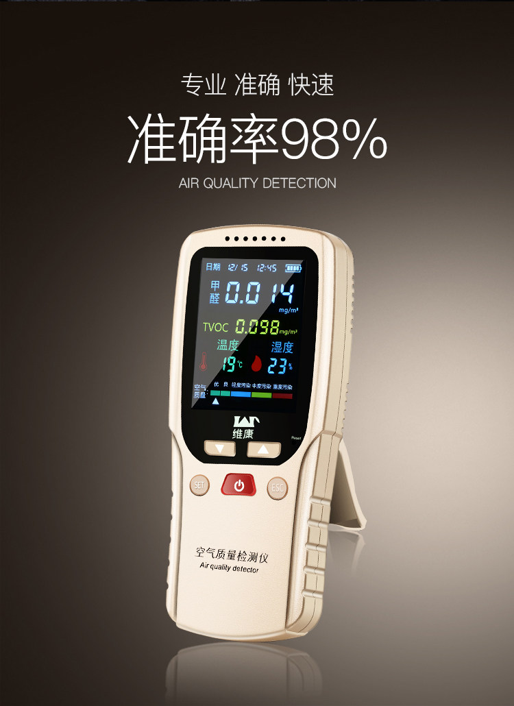 功能挺全的 可检测甲醛 温度 空气湿度和空气污染指数而且操作简单 检测准确速度快 居家必备 值得推荐!