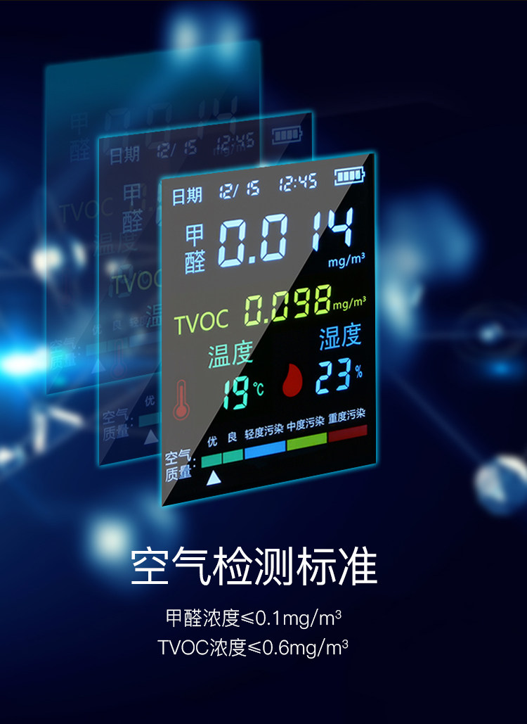 家里的情况终于可以是一目了然了,一直就是不放心家里的情况,孩子马上就要出生了,也是做好全部的准备来迎接这个小生命,这款检测仪器屏幕大,好读值,操作简单,主要是很灵敏,测的结果也超准确,家里就是客厅感觉有点小味道,结果也就是客厅是超标的,其他的地方都是安全的,已经采购了去甲醛的,希望小孩出生后屋子甲醛都达标。快递派件也很迅速,快递赞一个,价格也不贵甲醛的仪器做工很好外观还蛮漂亮 。家里房屋日常要多通风 试了试效果真的很好,很满意!已经介绍朋友。