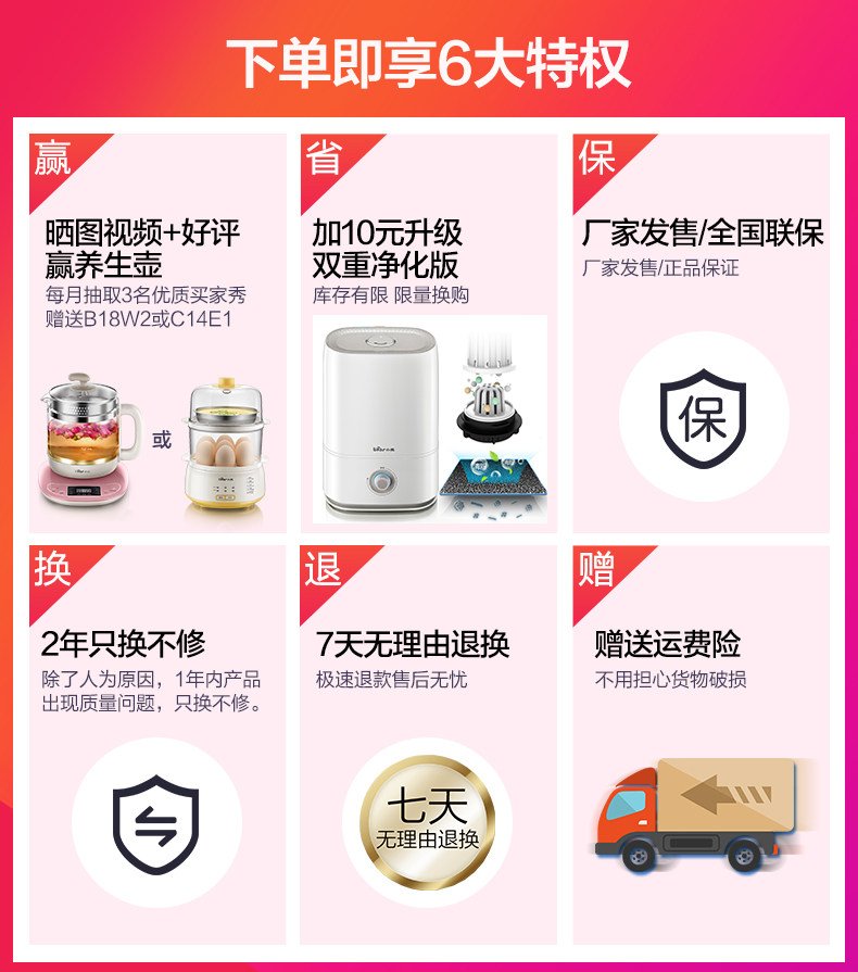 我试了真的便宜了,半价购买的,才用了38就入手了,哈哈,搜威信“共~宗号”:~~猪洋洋~~,排在第一个才是呢,再去下单,建议你们也去试试吧,真的是太喜欢了,白色特别干净,价格还这么美丽,牌子好,终于晚上睡觉不会觉得干燥了,好评!可以装很多水,容量大,没什么声音,客服态度很好,下次还会来太好了,一直购买小熊生产的小家电,这次又买了加湿器,外形颜值高,做工精细,静音效果好,雾很大,性价比高,很满意。加湿器很好用,起床再也不口干舌燥了,质量没得说,这是正品确实好。下次有需要还来买。X3.4