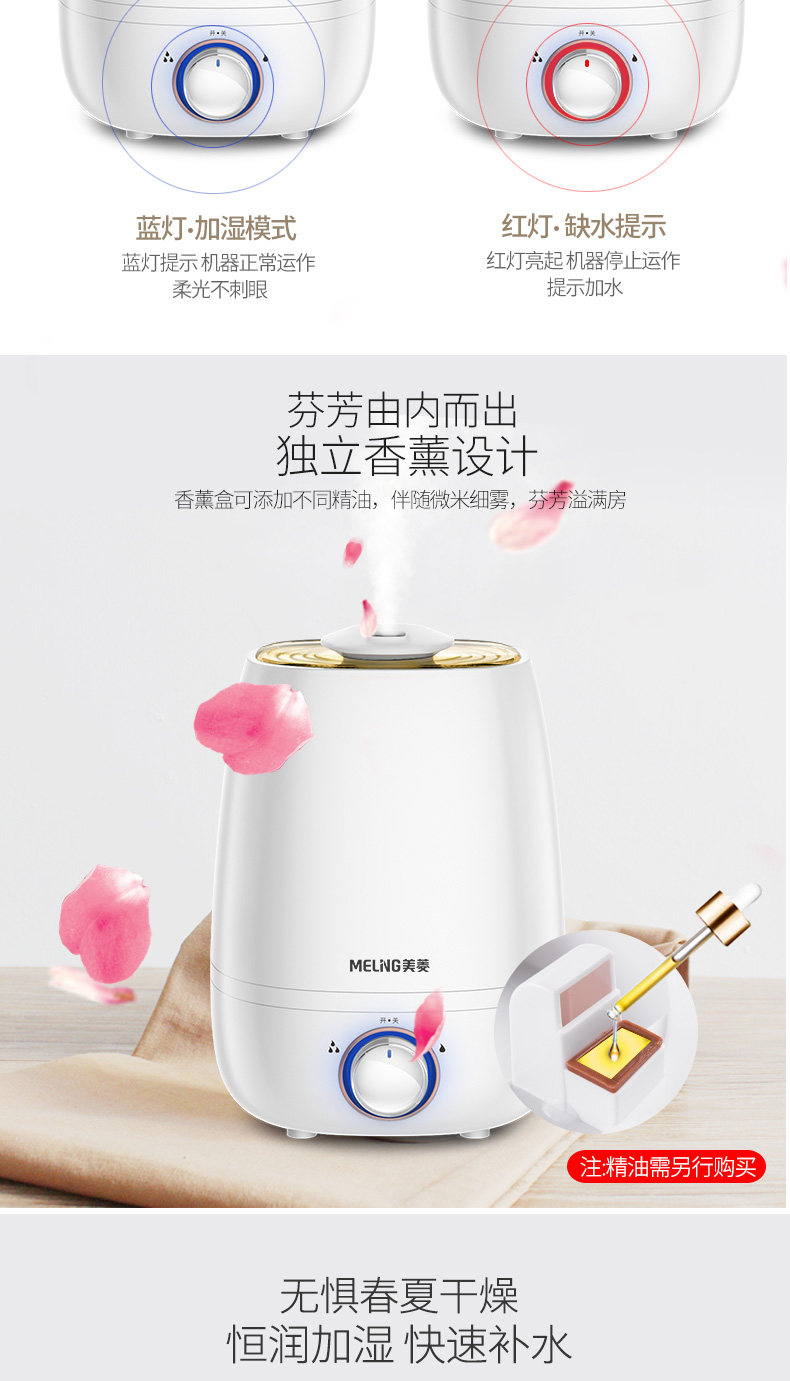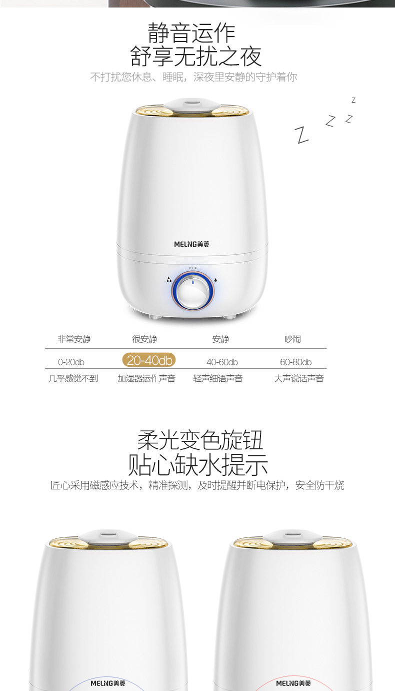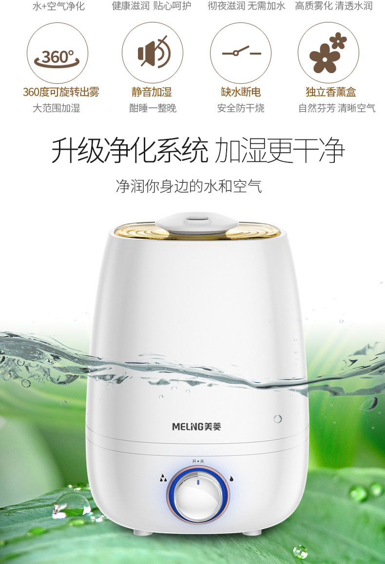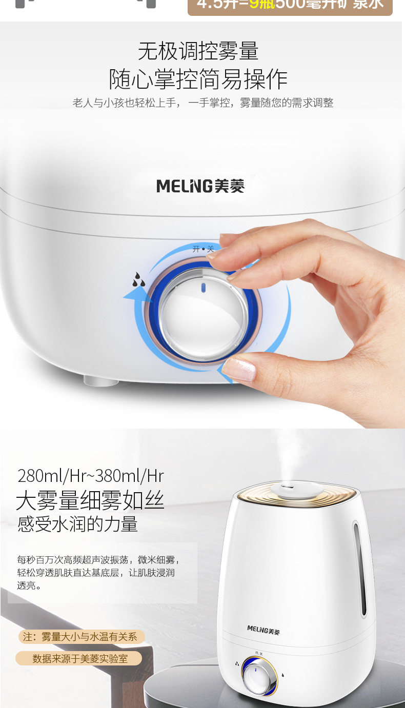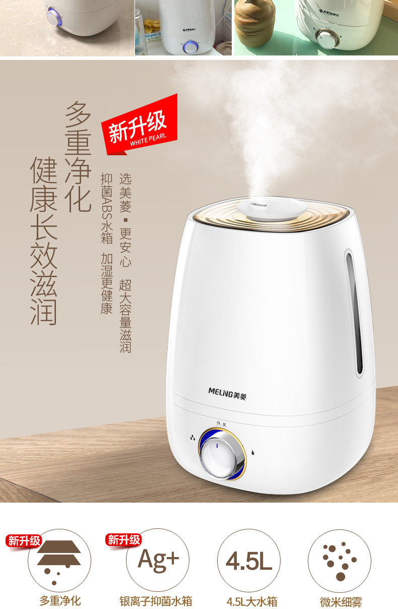 美菱加湿器外观很不错,水滴型,时尚大方,充电后使用,喷雾够大,均匀,湿润,皮肤不会感觉干燥了,这是第二次购买了,老客户了,质量也很好,没有噪音,晚上可以安心睡觉的,去年买了一个,这次感觉不错又买多一个,好好用,正品