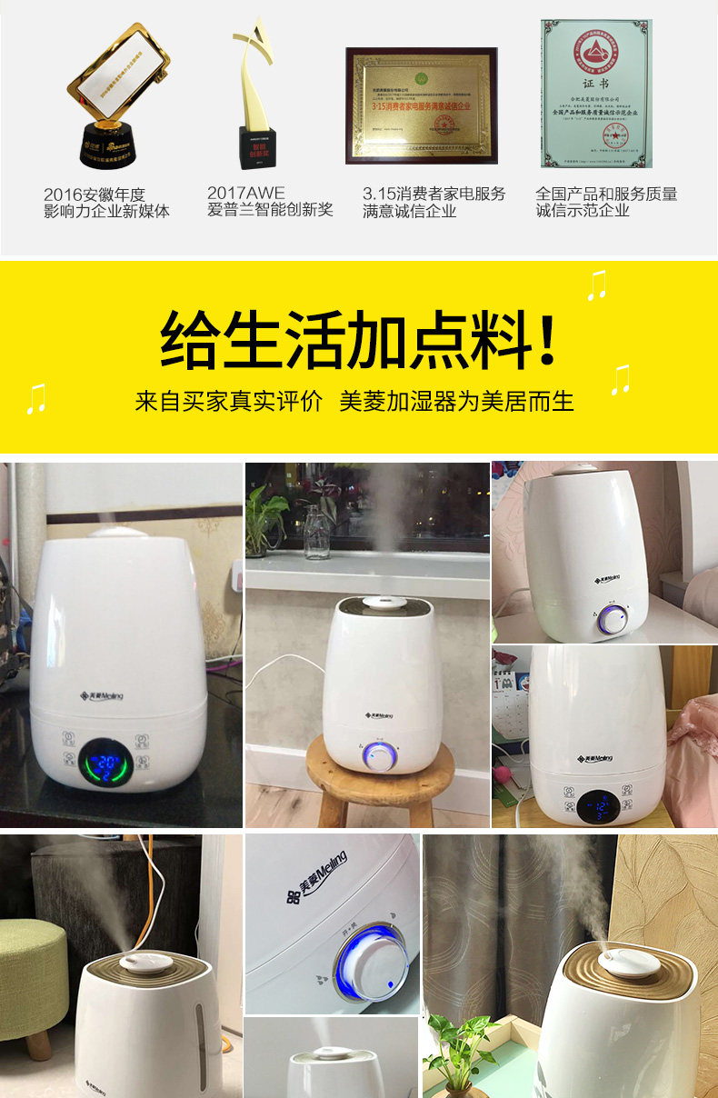 加湿器收到了,使用很满意,客服很棒,美菱的产品体验很好,老板生意兴隆哈