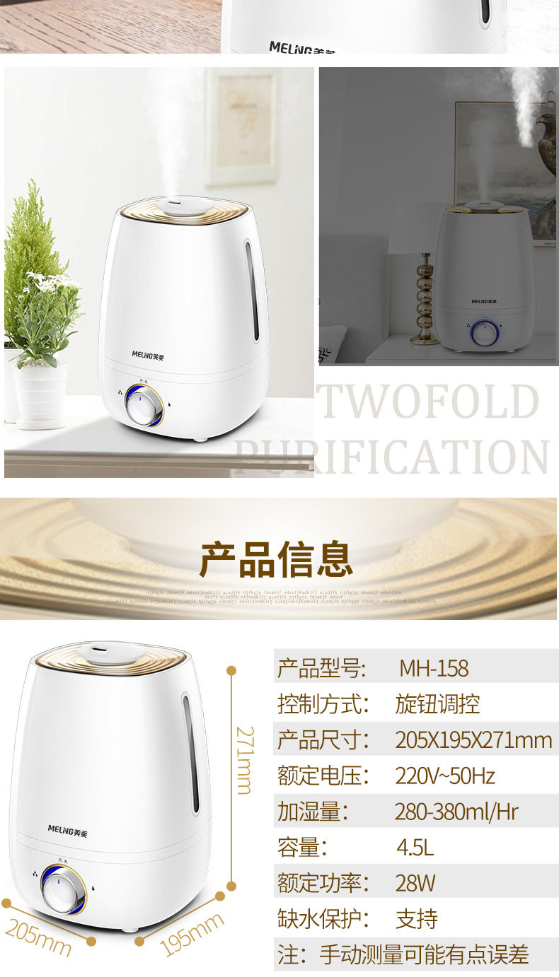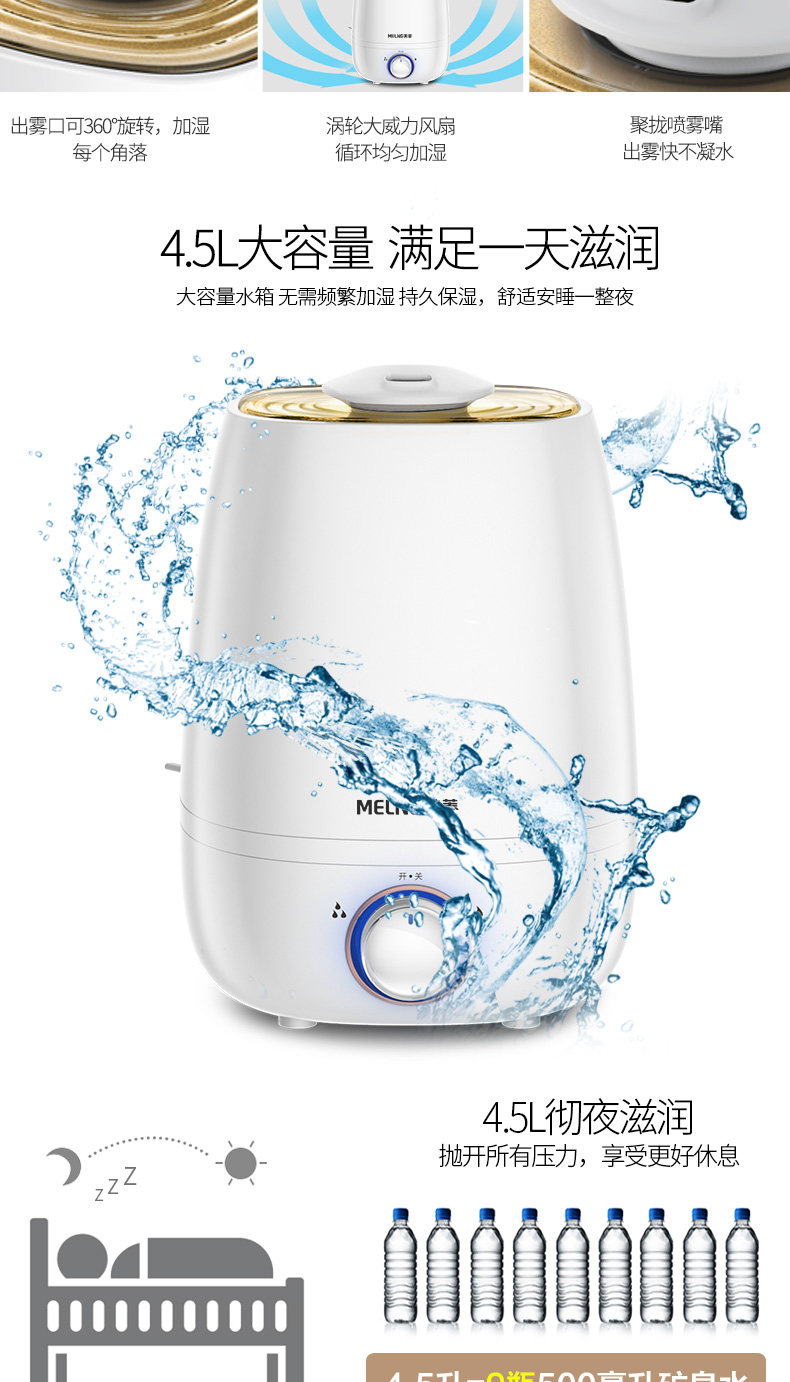 (82)[伟盛电器商城加湿器]空气加湿器家用静音卧室除螨杀菌大雾量月销量99件仅售288元