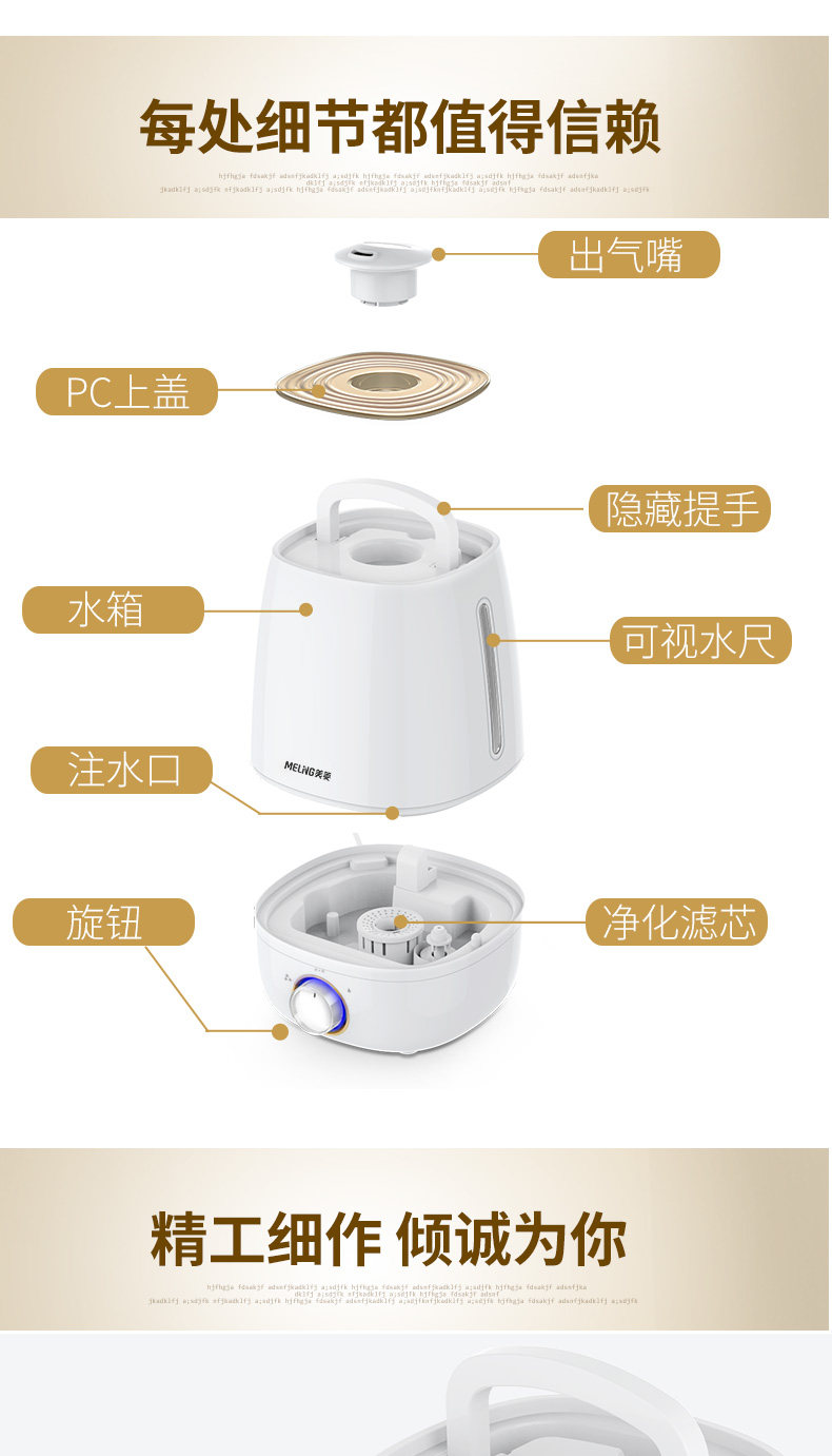 忘记开请假了这个加湿器还可以吧,中规中矩。最不好的就是这个加湿器的加水口太下了,真的太小了,想伸手进去擦擦水箱都很难!除了这个问题其他都还好!