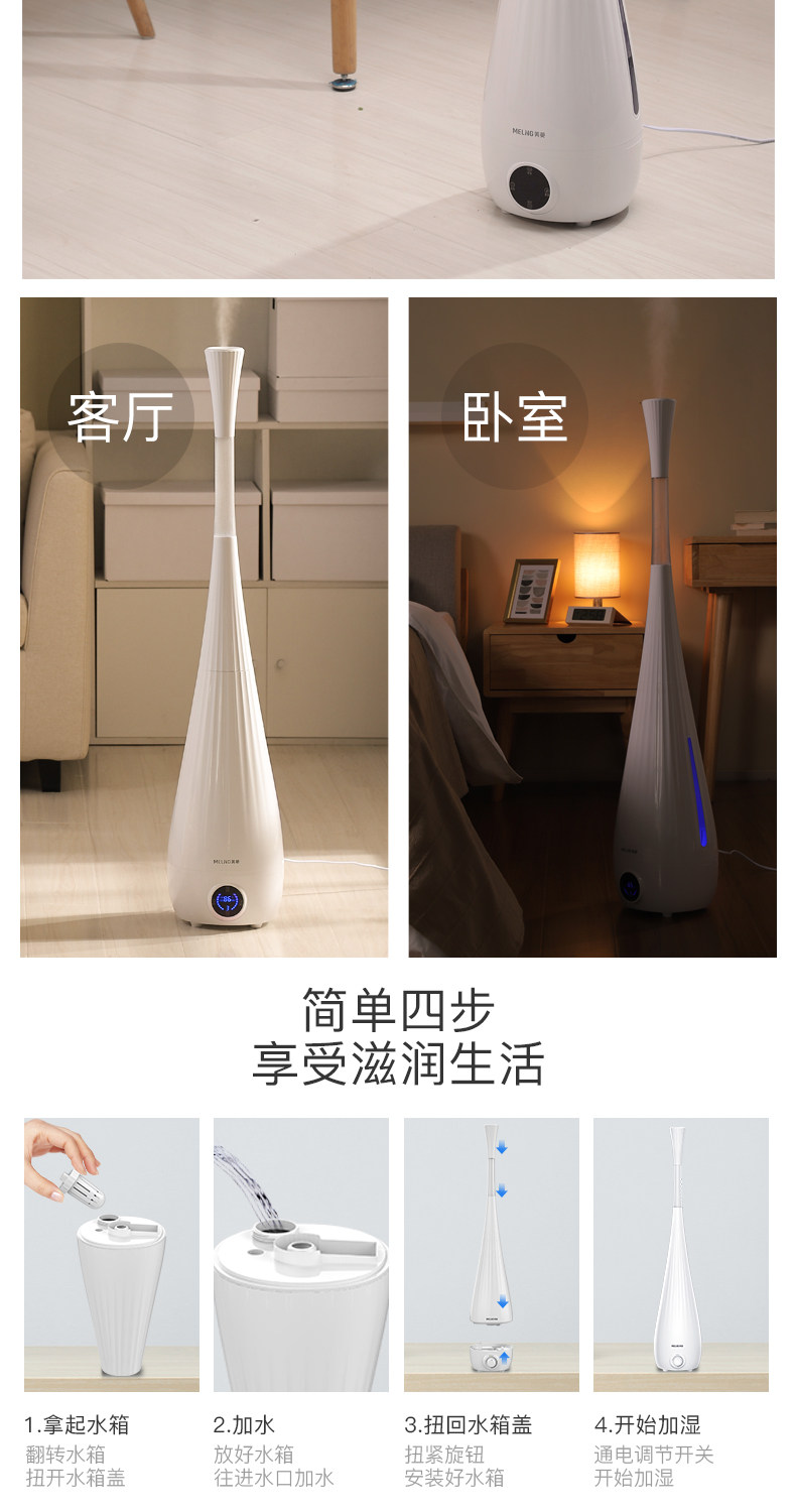 刚生完宝宝,家里天天开着空调,没有加湿器不行 看了几家决定买这家的,信价比不错,物美价廉 安装和操作都很简单,加一次水可以用很久,下午四五点装满水,用到第二天早上没问题!