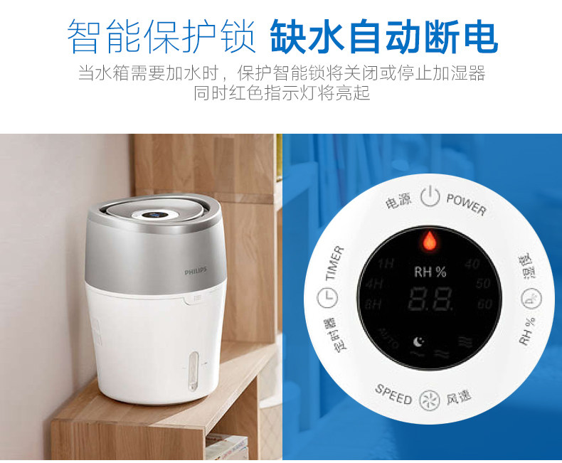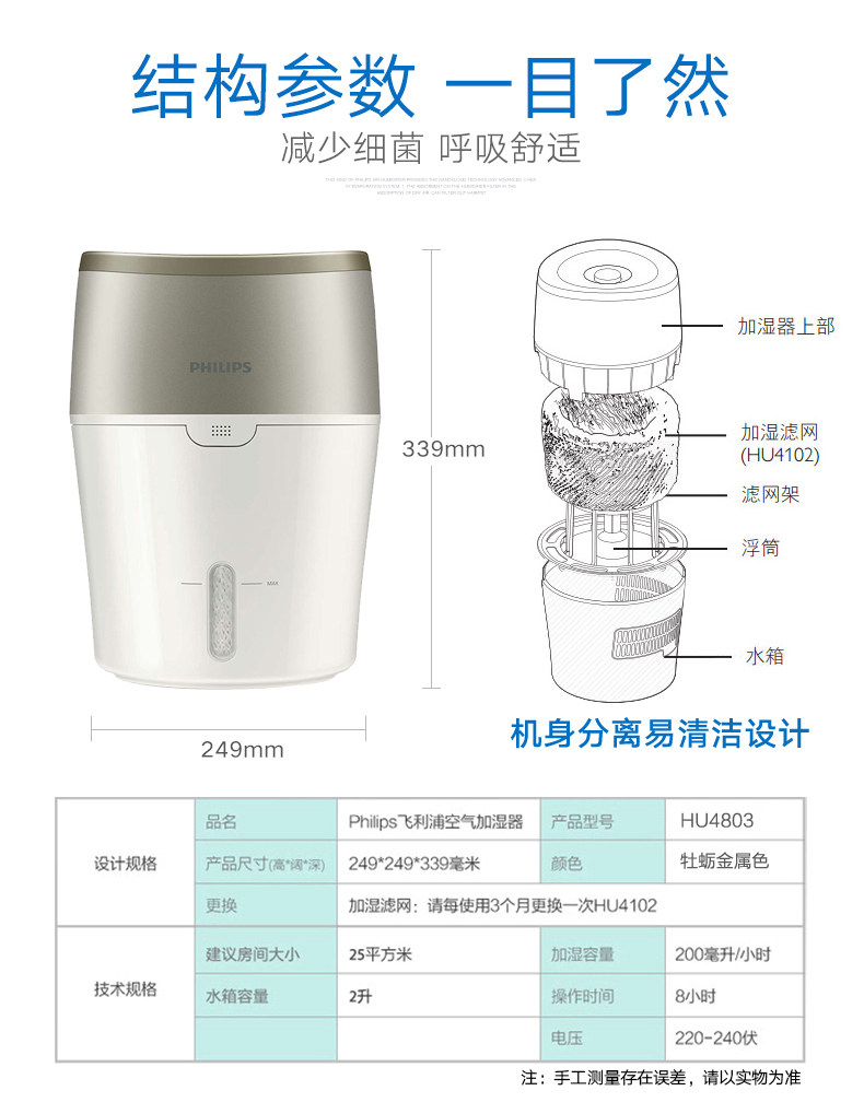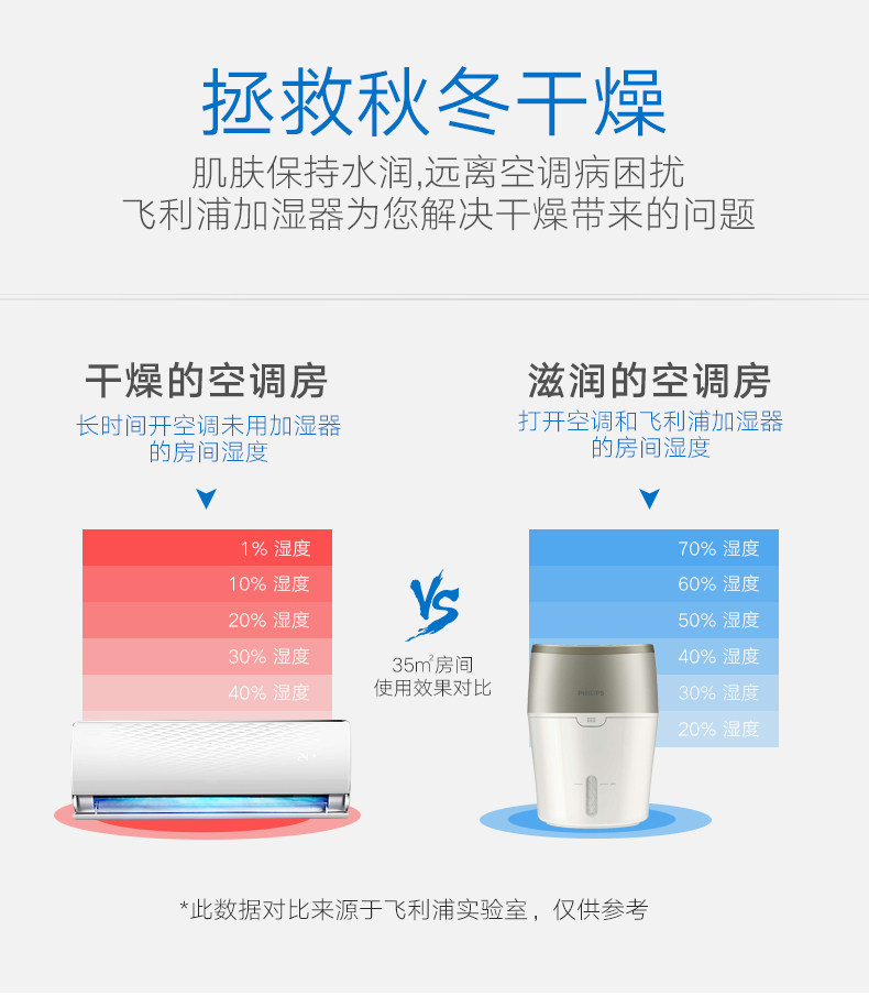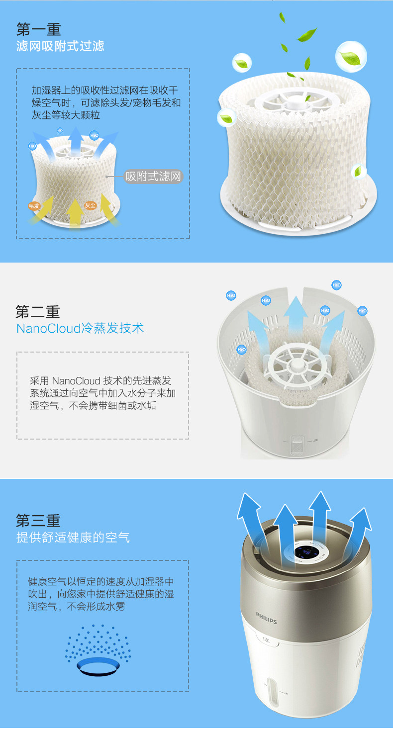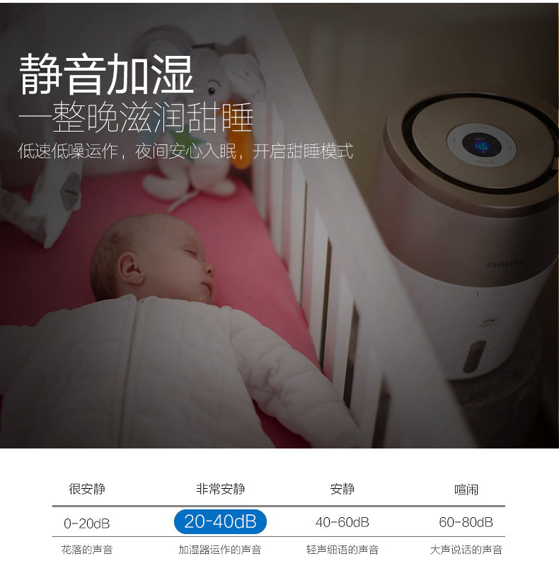 加湿器效果超级棒!关键是没有普通加湿器的呢种水雾,即使坐在加湿器边上也不会有潮湿的感觉,非常赞,用了一阵才来评价的,低速的时候没有一点声音的,飞利浦老牌子了还是很信得过哒,加湿效果还是很明显的,不像是普通加湿器只加湿一块区域而是整个房间加湿,很喜欢~