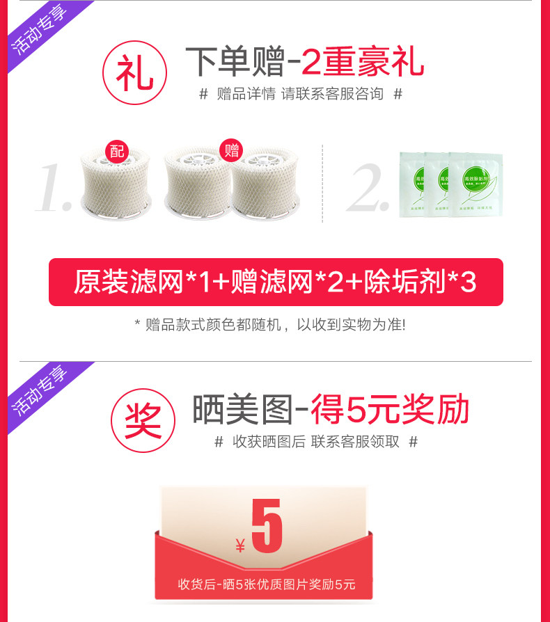 用了两个晚上了,感觉没啥作用,还是很干,第一宿半夜渴醒了,以为是暖气太热了,第二宿把暖气都关了,半夜还是被干吧醒了,而且晚上睡眠模式也不是完全静音,睡眠轻的亲估计不会喜欢,唯一优点就是不会像喷雾的能打湿地板,但它也确实没啥加湿的效果,不太理想,这个价格真是不值啊,电器类的不用怎么知道好不好用,用过了还不能退,这个问题真是难解啊(看过其他买家评论说滤网没用几次就长毛了,我想一个滤网多用几次,特意加的泉阳泉矿泉水,滤网还是用了两次就发黄了)