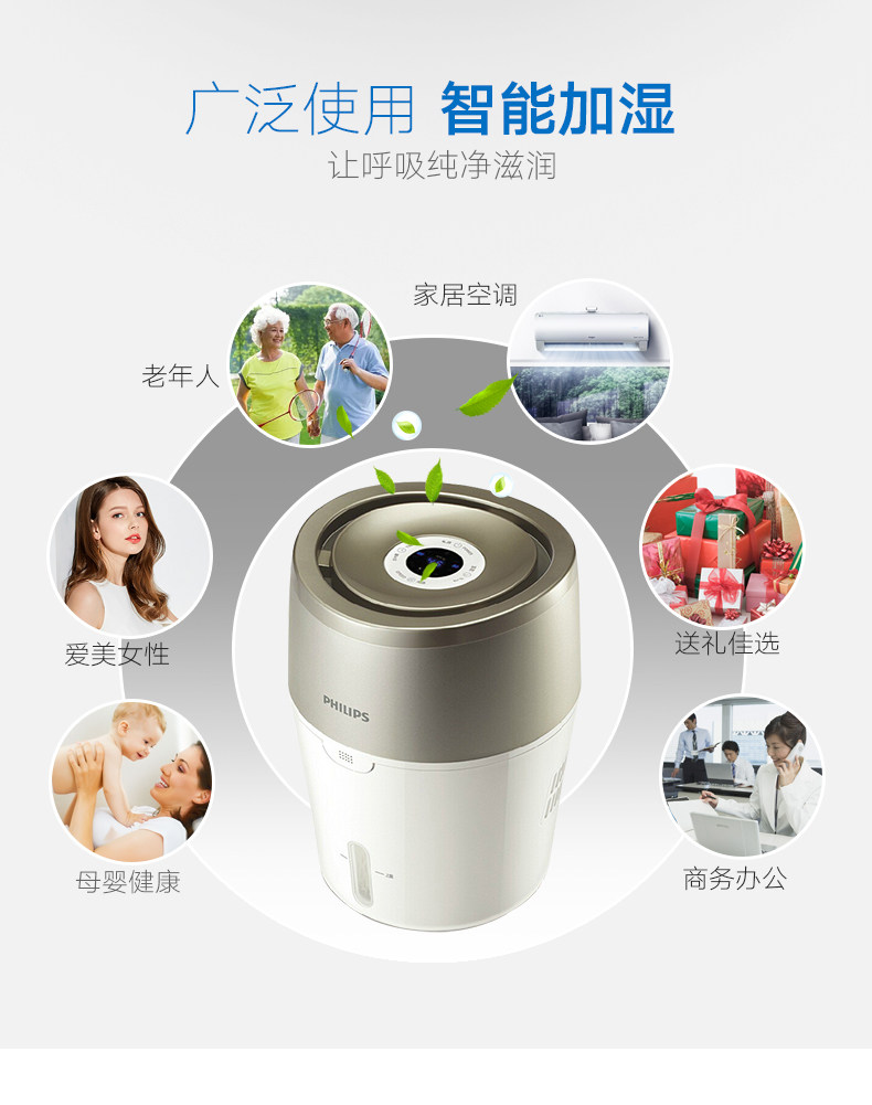 这个加湿器非常好,以前家里那种雾化的开到很大,第二天早上睡醒鼻子还是干干的,老公给换了这款以后就没觉得干,可以设定自己适合的湿度,噪声很小使用起来很舒适!