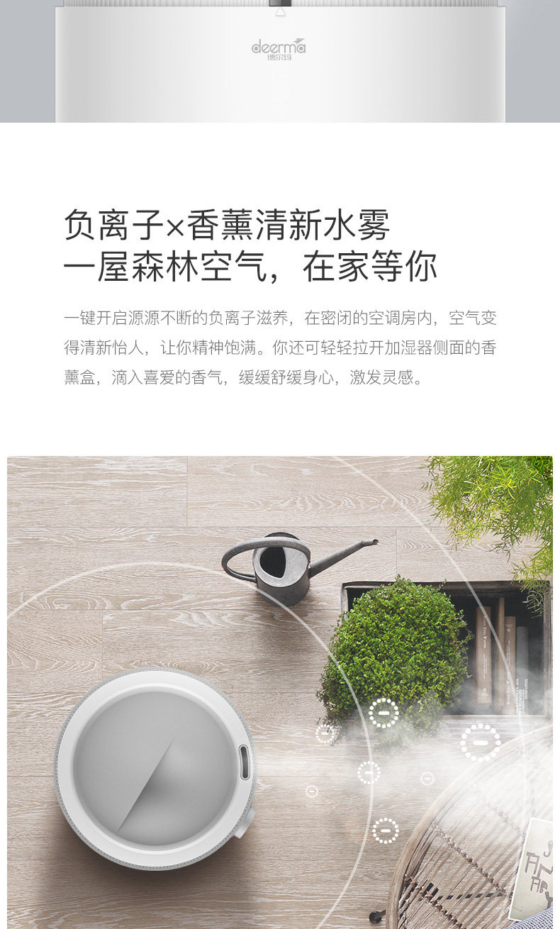 查找了很多资料才决定买这家的加湿器 今天收到就用啦~专业生产加湿器的品牌就是不一样!水雾不湿地板 很静音~还有负离子功能~真是棒极了!家里终于可以不干干的了!