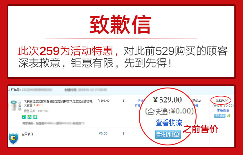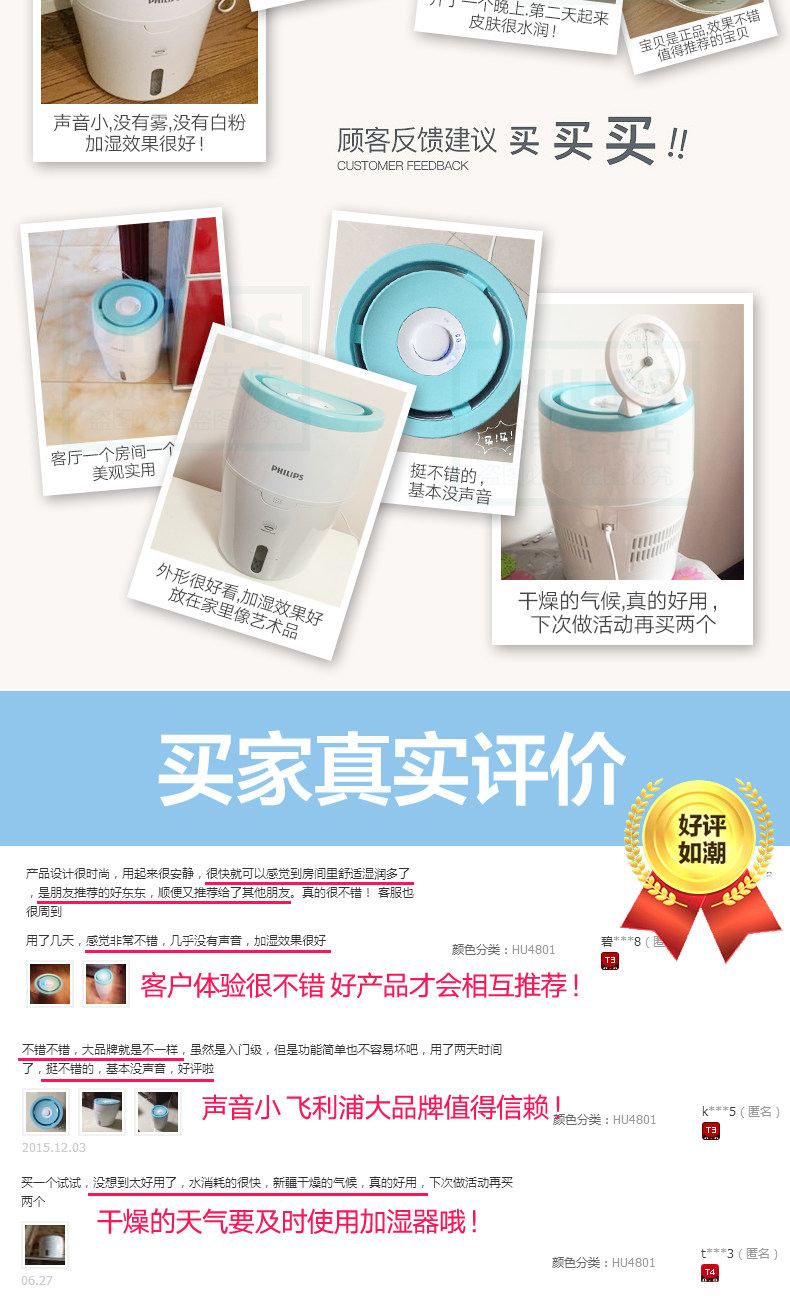 卖家发货很快,物流很给力,这是我买的第三台飞利浦加湿器,增湿效果挺好。