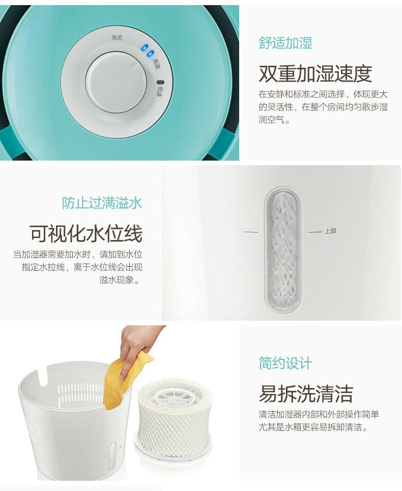 用了一段时间了,经受住考验了,所以来评价一下~ 颜色比较清新~ 无雾更健康~ 两档风速调节,操作简单~