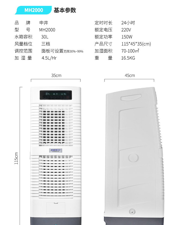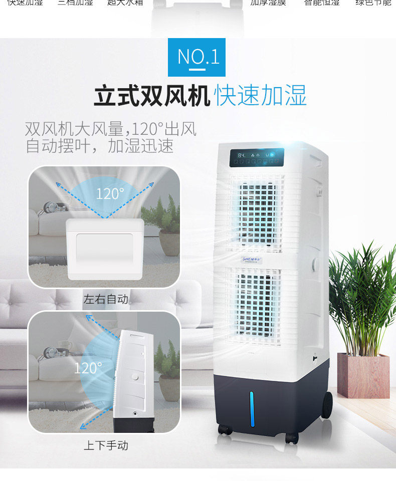 美观大方,尺寸偏细长,正好符合车间的要求,占地面积小,而且加湿效果好