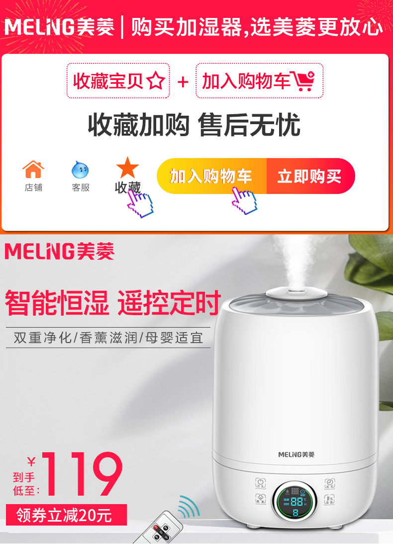 (82)[伟盛电器商城加湿器]空气加湿器家用静音卧室除螨杀菌大雾量月销量99件仅售288元