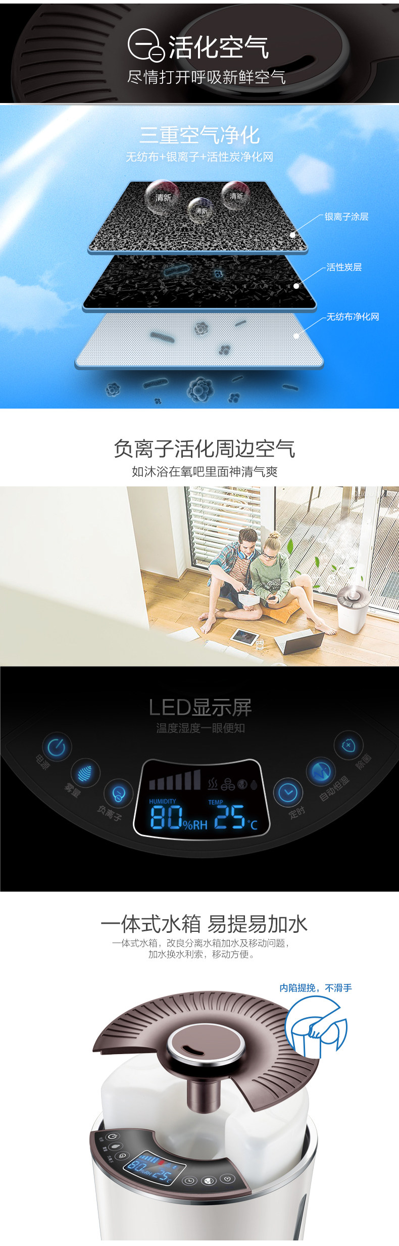(82)[伟盛电器商城加湿器]空气加湿器家用静音卧室除螨杀菌大雾量月销量99件仅售288元