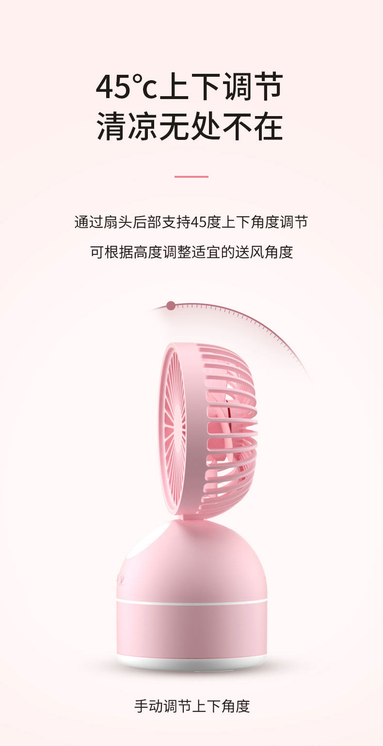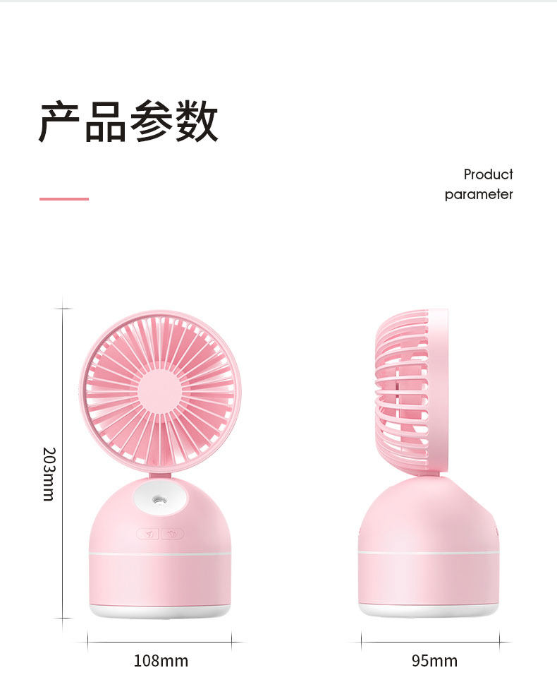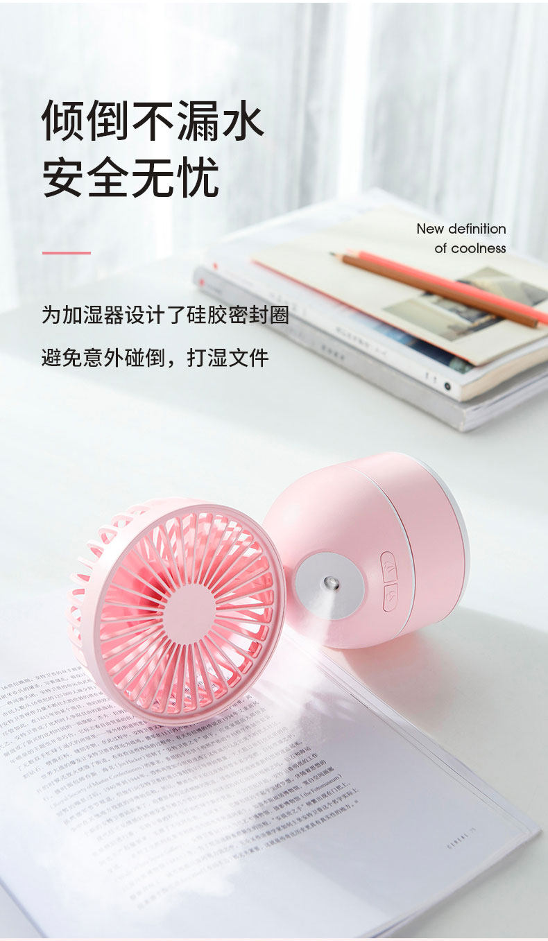 颜色好看,粉粉的很少女心哦,有2个功能,风扇+加湿器,让这个夏天更凉快,放办公室或者家用都很合适哦,夏天长期开空调会很干用这个可以补补水哦,还有风扇的风力很大哦,还可以调节呢