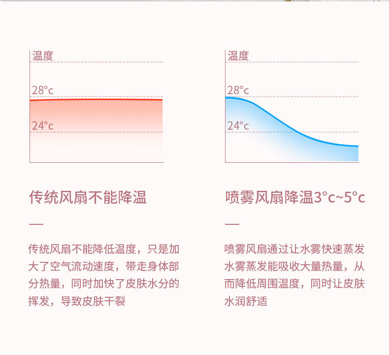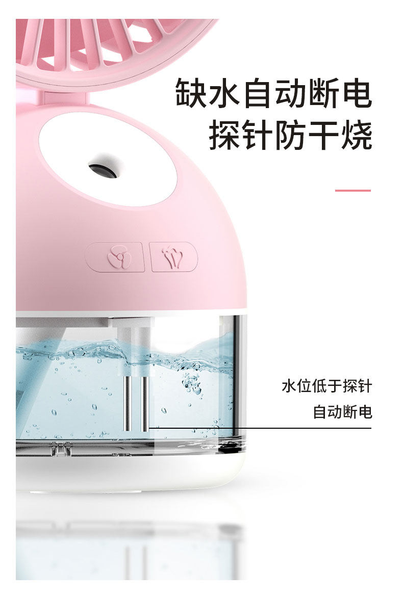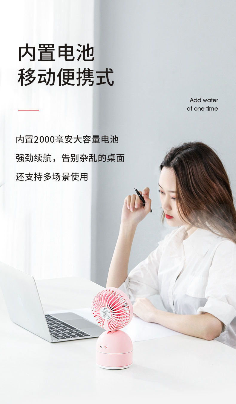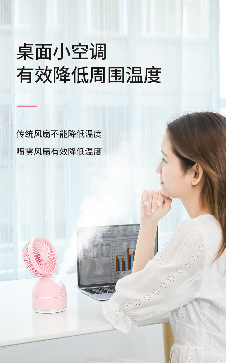 颜色好看,粉粉的很少女心哦,有2个功能,风扇+加湿器,让这个夏天更凉快,放办公室或者家用都很合适哦,夏天长期开空调会很干用这个可以补补水哦,还有风扇的风力很大哦,还可以调节呢