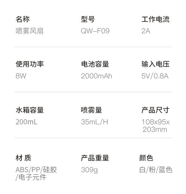 非常好的购物体验,宝贝真心不错,就想品牌名字一样☞简约。真的简约大方时尚,风扇,我试啦风还挺大的,主要喷雾效果特别好!很精致,很喜欢!