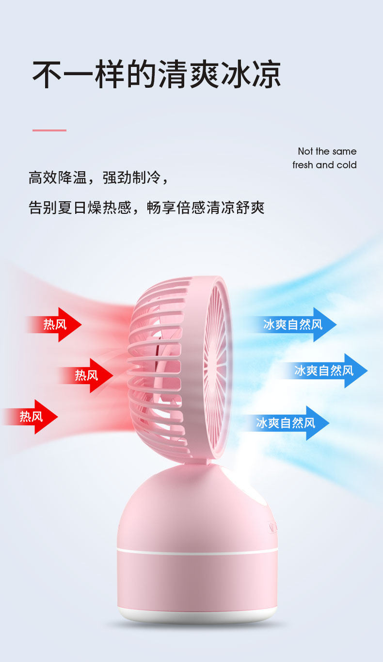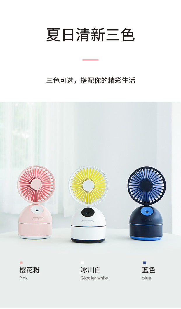 喜欢的一款风扇,很小巧,很迷你但风力很大,风速可以调。雾也是很细腻。桌面或床头都很方便哦,我觉得颜色也很正,我很喜欢的,最愉快的一次网购了,朋友有需要我会推荐的。价格卖的确实也不贵。