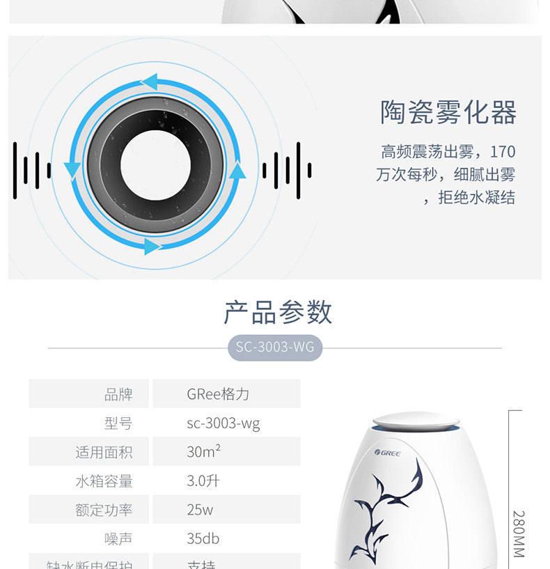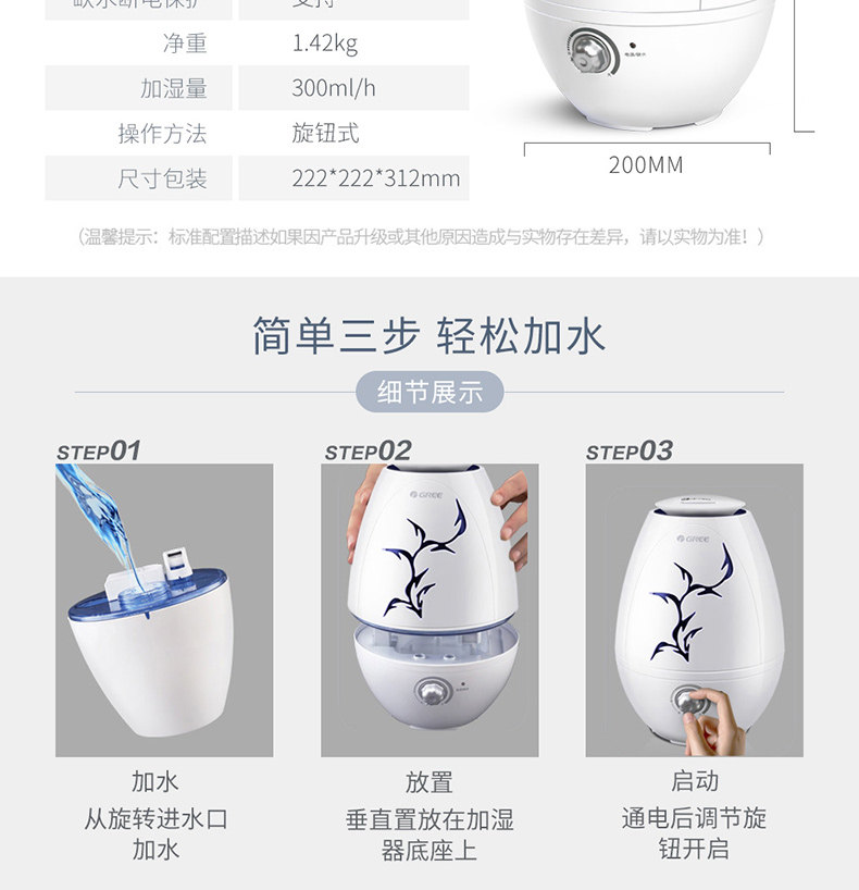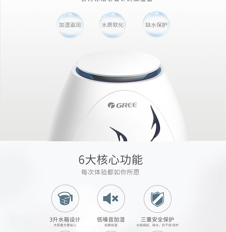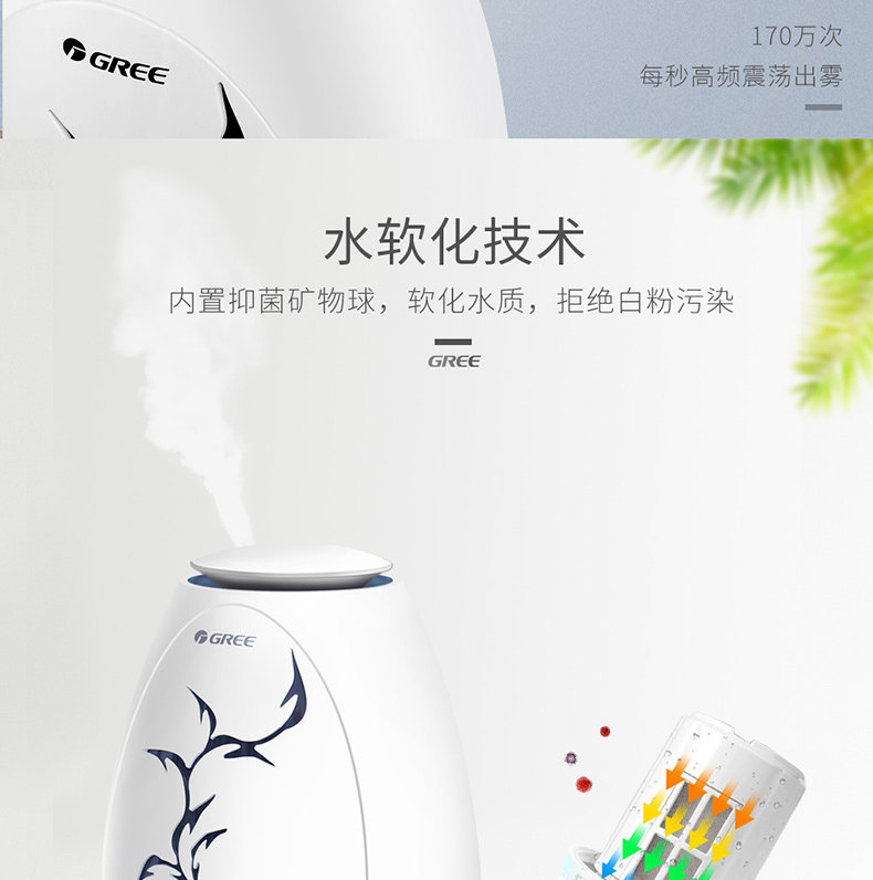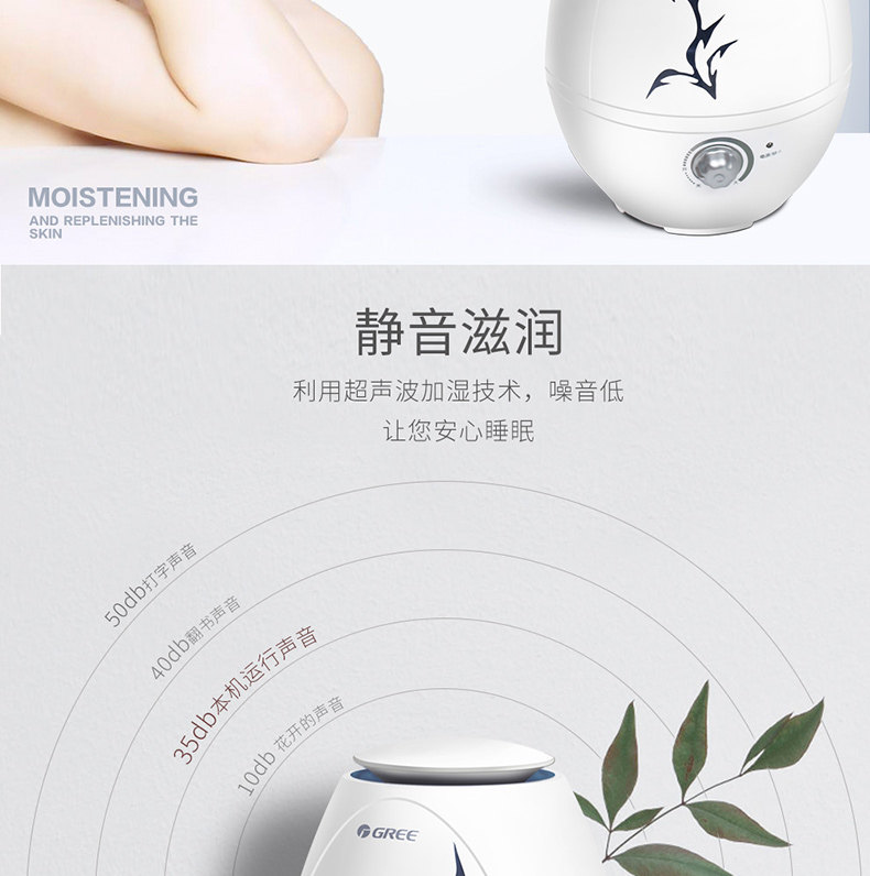 格力大品牌,就是好,声音特别小,不影响睡眠。出雾量大,晚上特别舒服。屋里湿润,孩子很舒服的。