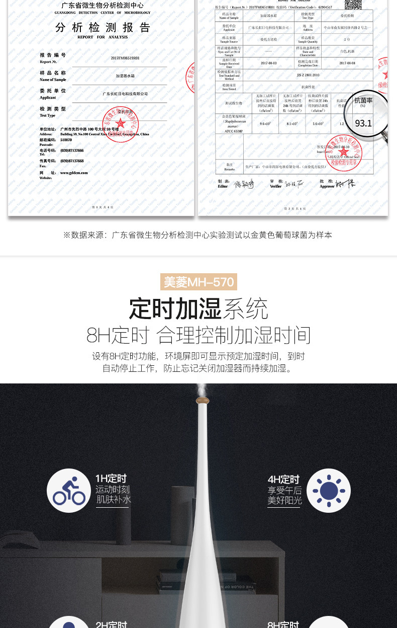加湿效果:加湿效果很好,雾量大外观很独特,很漂亮,遥控也很好用,点赞,买的很值!很棒!