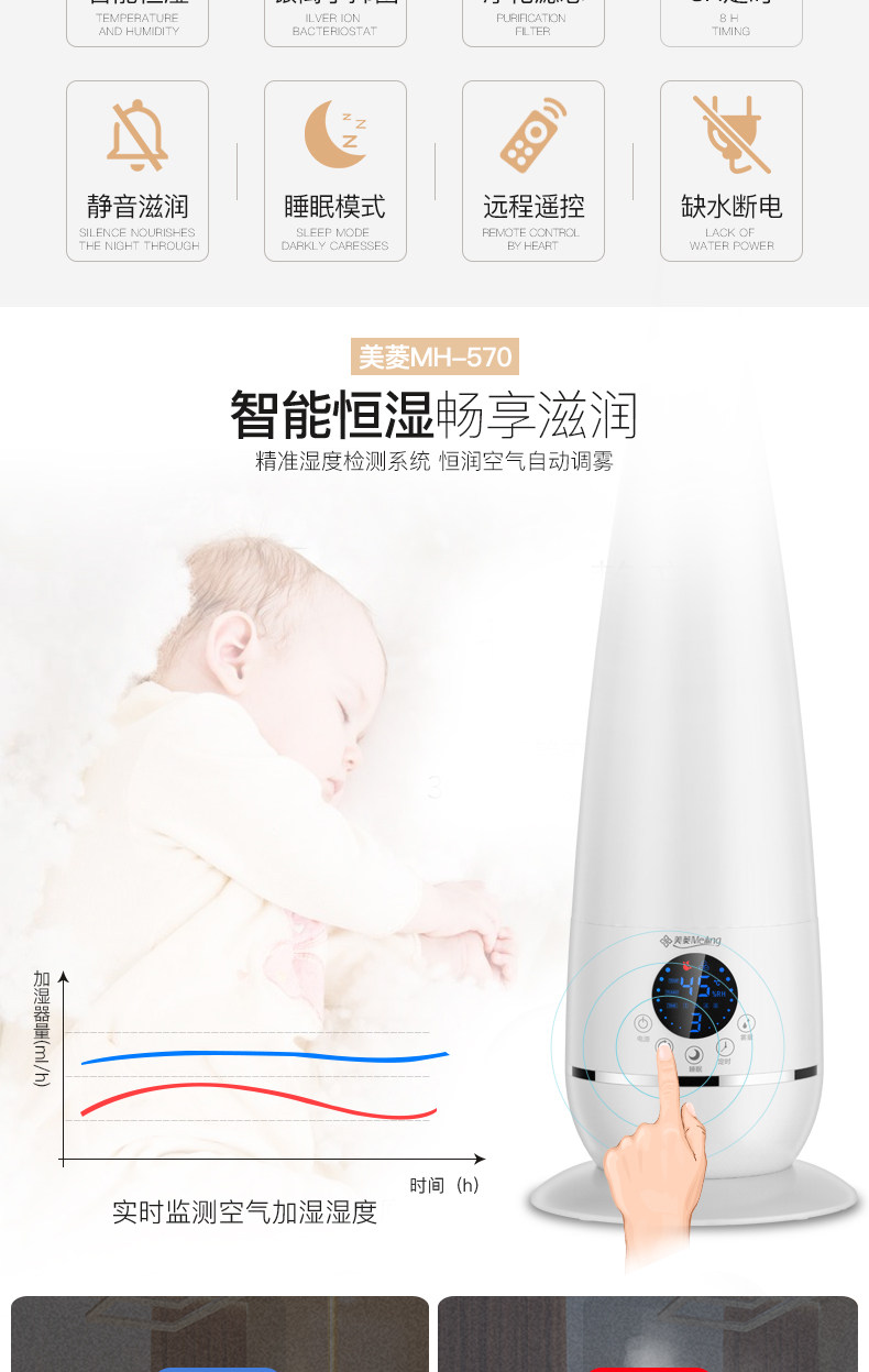 加湿器不错,恒温控制,而且出雾量很好,还能调定时和睡眠模式