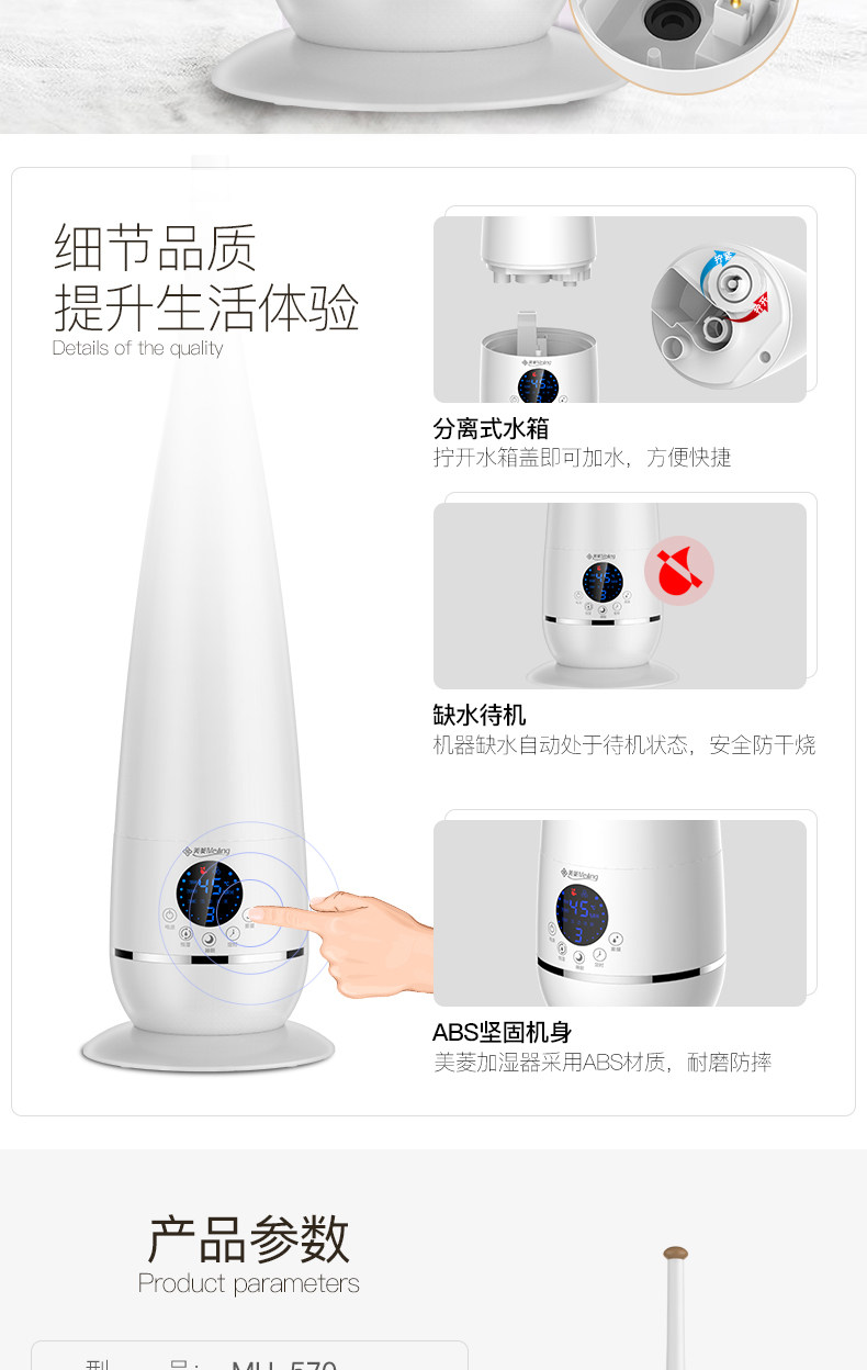 这款加湿器外形美观,大方,不湿地板,非常实用,以后还会光顾的!