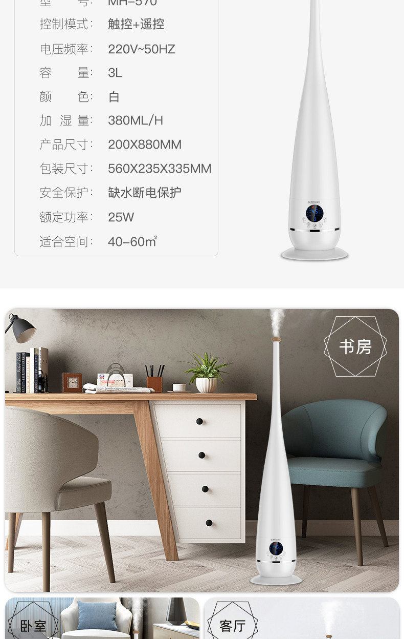 宝贝买回来了,美观大方,特别好用。加湿效果明显,水雾很细,值得拥有!