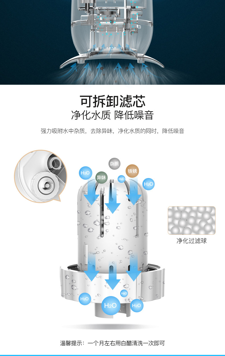 水箱容量:加满水用十二儿个小时完全没问题 噪音控制:噪音的话是有点的,但是在可接受范围内,睡着了是听不见的,就是那个水从上面落到底座的时候会有咕咚咕咚的声音,我睡眠浅会被吵醒,习惯了就还可以;最大的问题是我这个有点漏电,我自己手能感觉到,并且有滋滋声,但是不怎么影响我就懒得换了,看以后用着怎么样吧,淘宝店家售后都还不错所以也不怕 外观材质:外观我挺喜欢,大气别致 其他特色:希望有改进的地方就还是声音