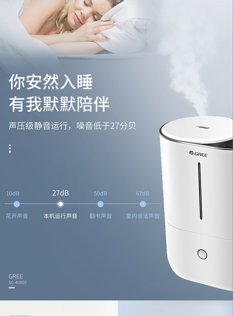 完全静音。。格力的东西还是不错的。雾气出来的也很快。。真好。加水也方便。买对了。