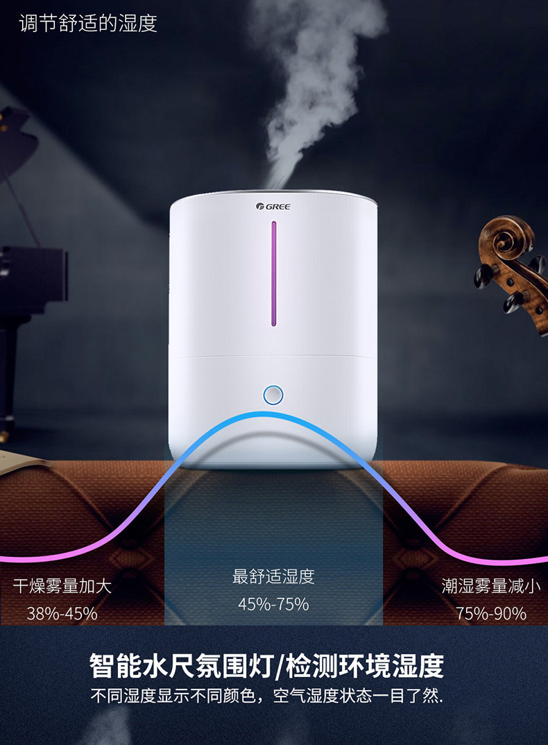 真的特别棒,我家里干燥,是橘色黄,开智能,几乎没有声音,超静音,雾气大,很满意,还送了精油,还有除垢剂,格力真的很强大!