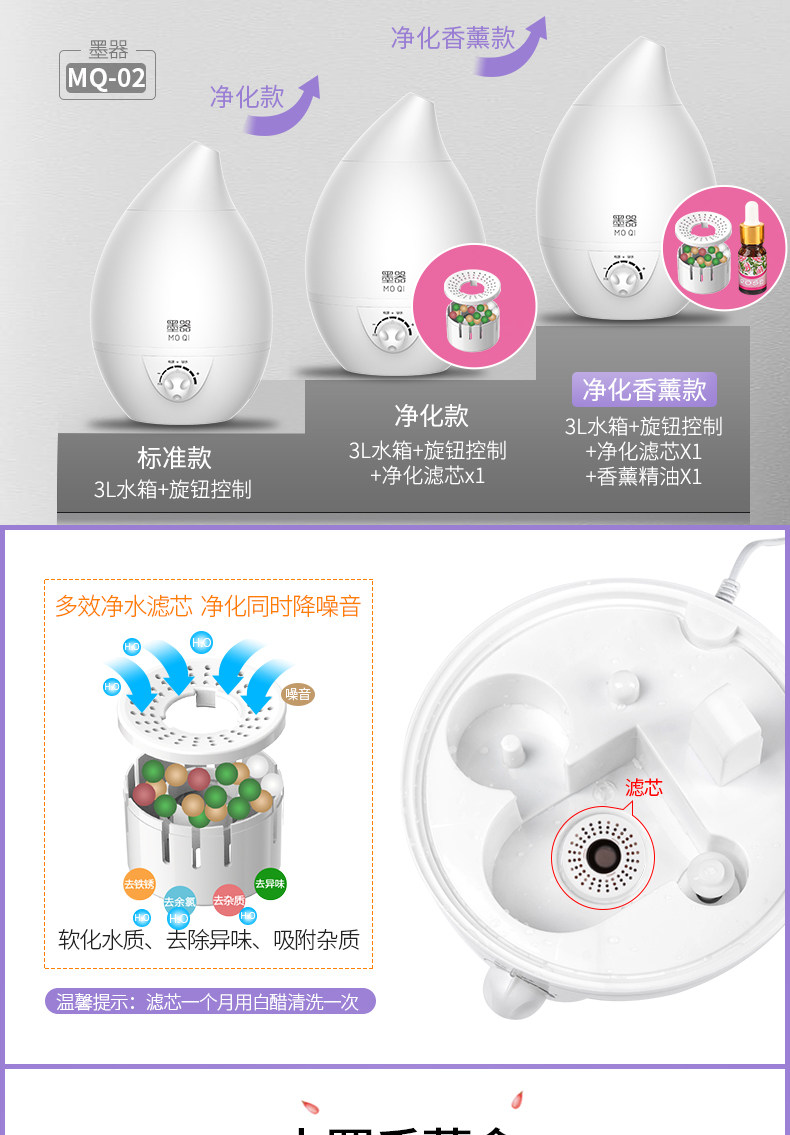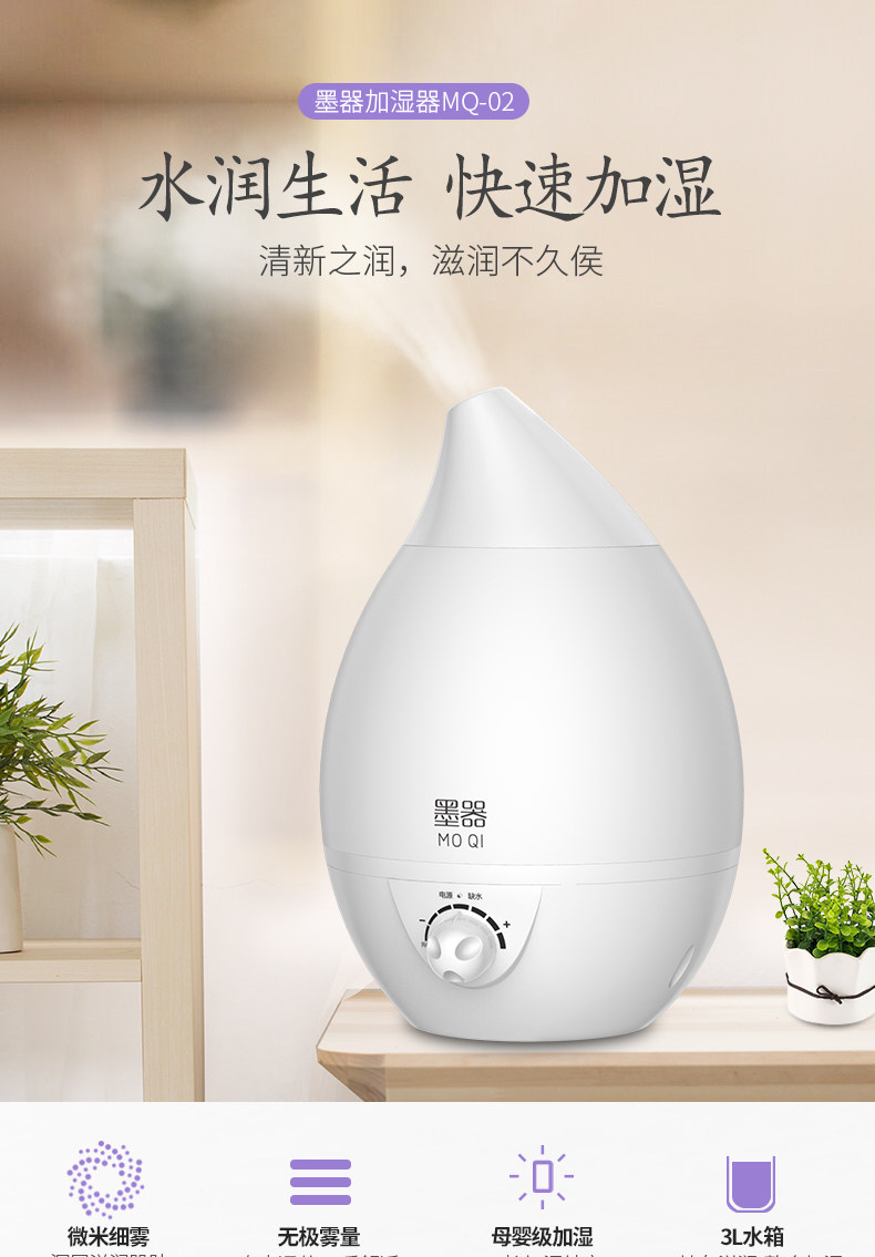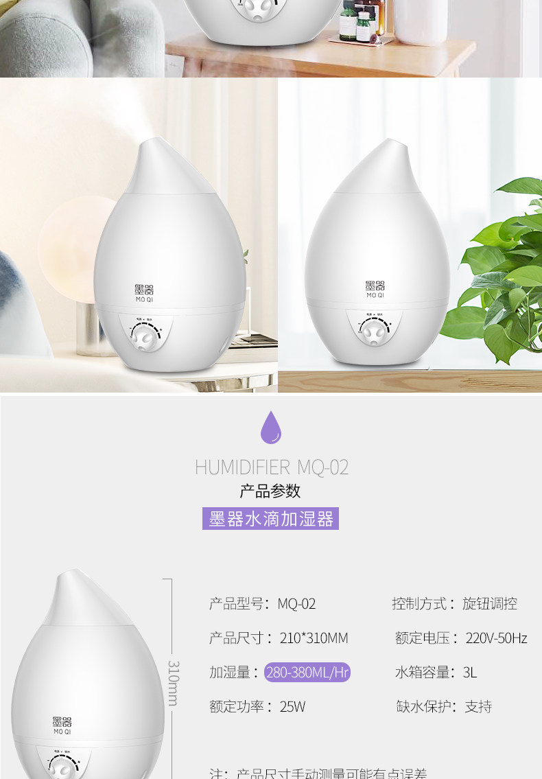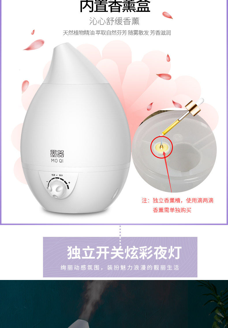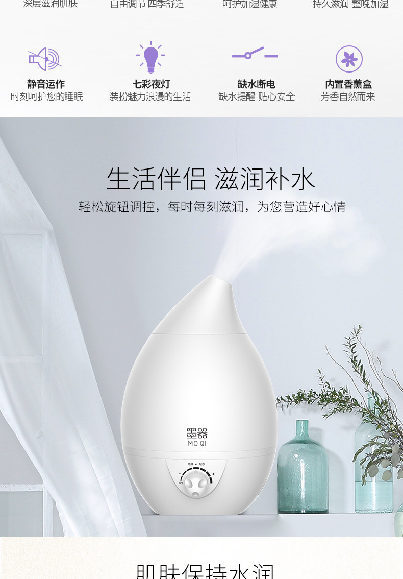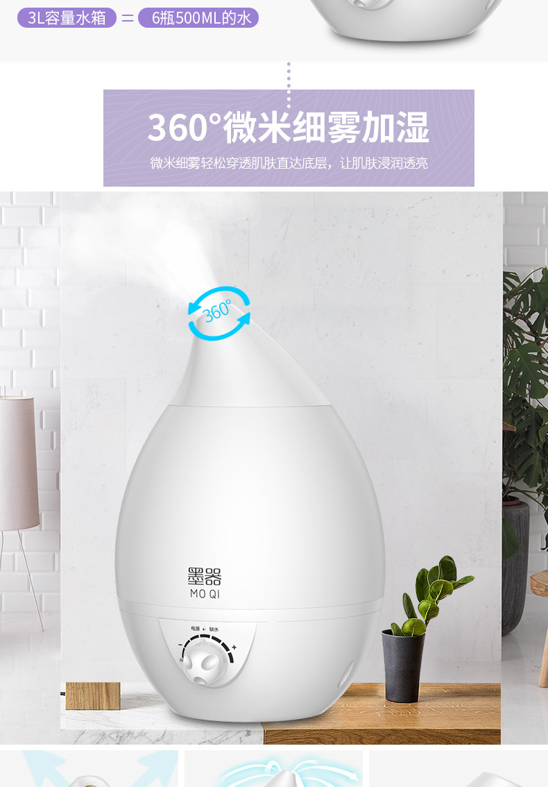水箱容量:大 刚到货感觉不值这个钱,挺塑料的,不敦实。用着还是不错的,灯可开关,喷雾也可以,声音正常。水容量真的超级大