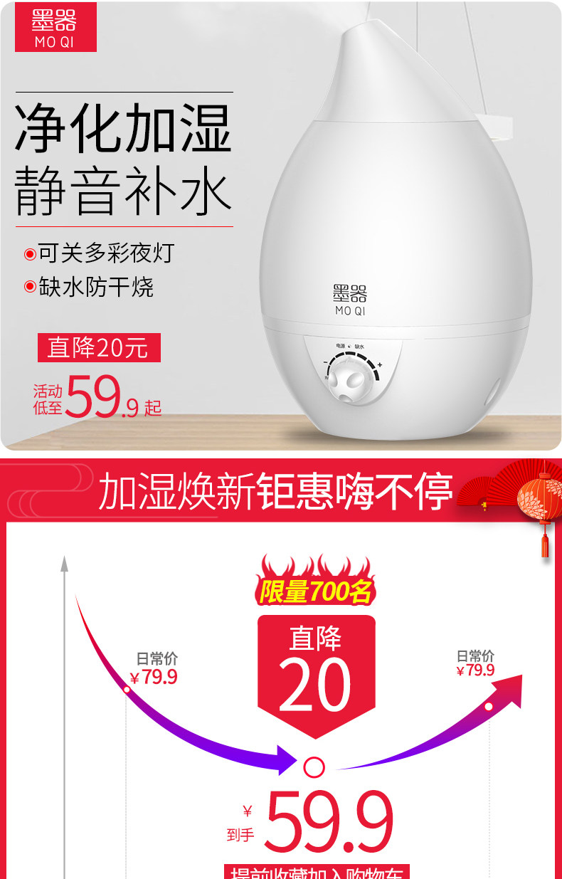 (82)[伟盛电器商城加湿器]空气加湿器家用静音卧室除螨杀菌大雾量月销量99件仅售288元