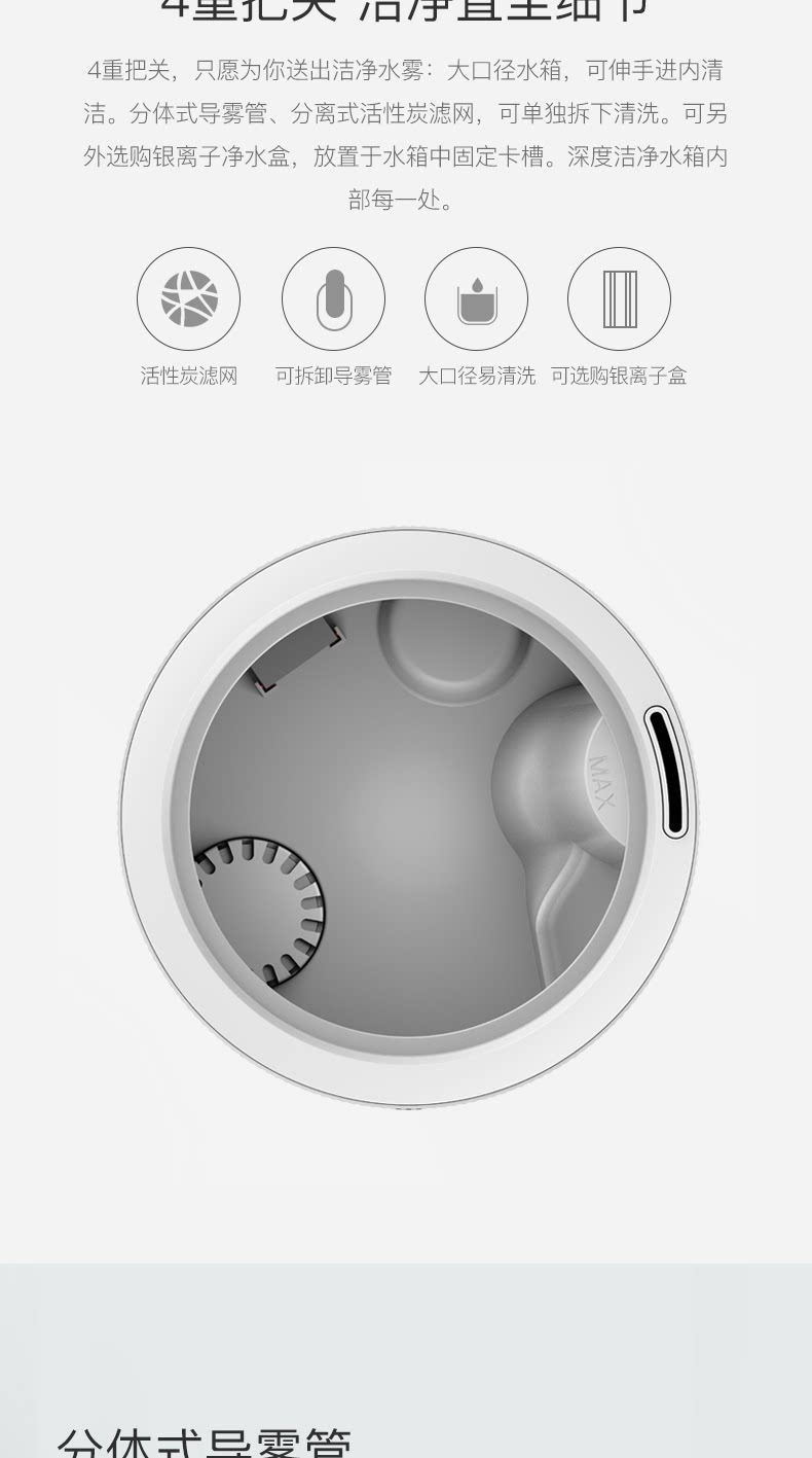 多年不评论的我要评论一下,话说这个加湿器我足足挑了一个月,都没有我认可的,毕竟我的要求有点多,我要雾量大、好清洗、储水大、水干断电、颜值高、白色,没想到你真的全部满足了,太开心了。