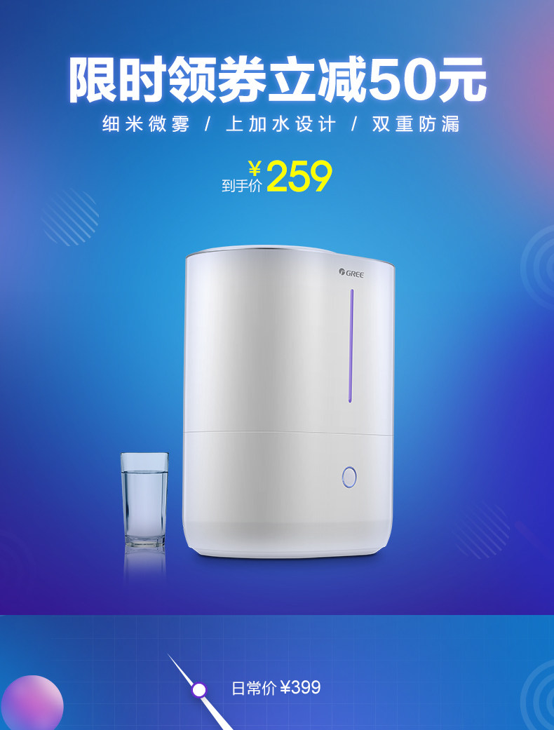 (74)[gree格力官方旗舰店加湿器]Gree/格力 SCK-50X60b月销量99件仅售429元