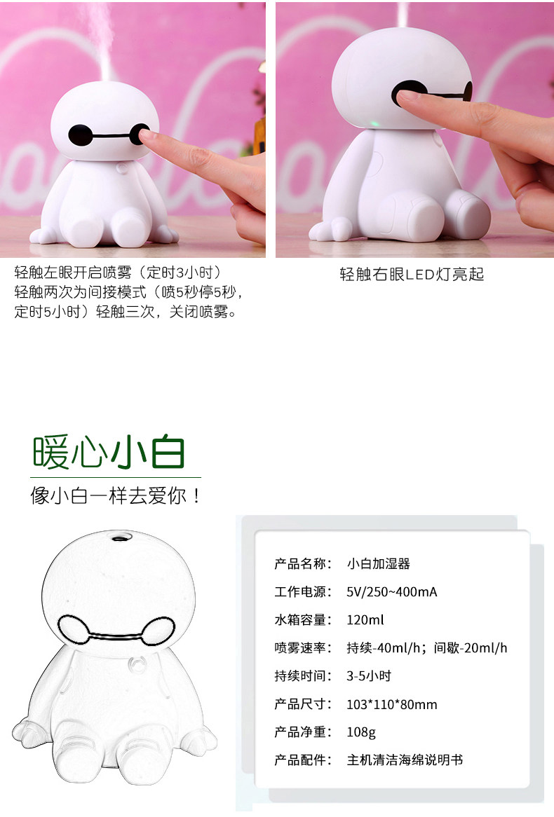 [好多宝个性定制USB加湿器]迷你usb空气加湿器宿舍办公室桌面静月销量32件仅售29元