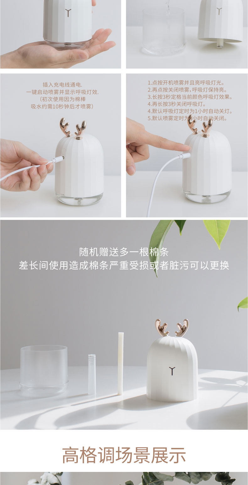 物流很给力,收到后马上打开了,包裹很严实,还送了备用棉条,超级可爱的加湿器,质量也不错,灌上水用了下,颜值爆表,室内干燥放个加湿器真的有缓解,性价比高,太喜欢啦