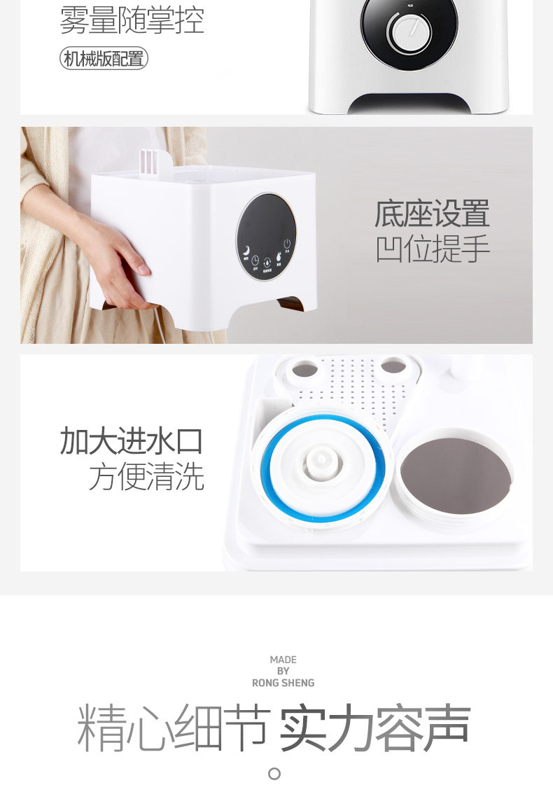 优点:水雾够大,加湿有显著效果,水箱很大,足够连续使用,可以改装 缺点:下加水再翻过来水会流出来,不太方便,水箱无视窗,现有的直角管管口处凝水,会滴到机子上 总结:值得购买,改装一下更OK,如果能上加水就更好了