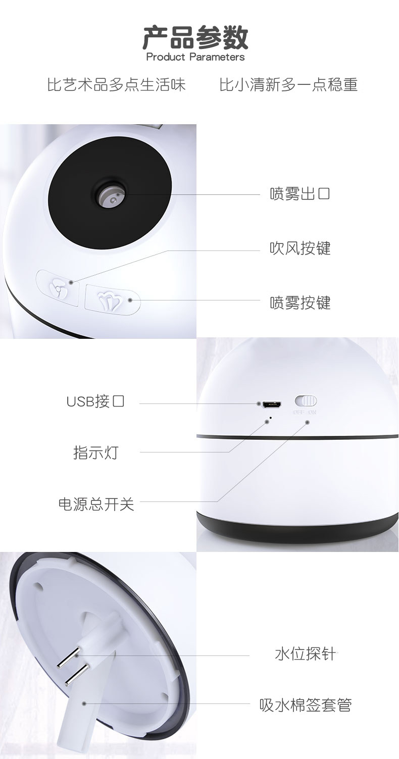 很好的小加湿器,款式很可爱,颜色很漂亮,效果很不错,细节做工很好,价格很实惠我很满意,好评。