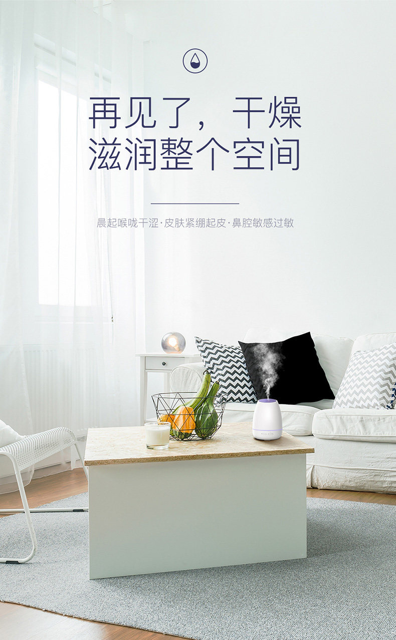 用了一段时间才来评论。一开始水气时有时无,觉得特别不靠谱。原来是水位太高,记得加水不要到那条线,要少过!要少过!要少过!比那条线少就妥妥的。体积小,七彩灯。用后唯一比较明显效果是,开门时不再被静电电到了!不错!满意。一天十二小时大概加3到4次水~