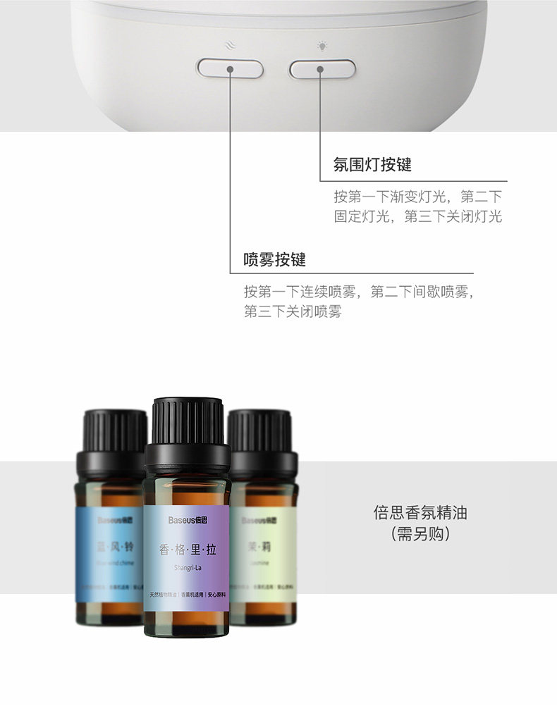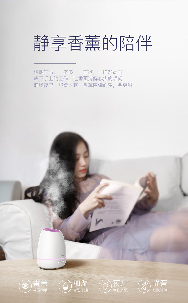 冬天空气容易干燥,我觉得买个加湿器还是有必要的,看了好久决定选择倍思家的,确实没有失望,加湿器雾化也挺细的,喷出来雾气很足,呼吸都感觉鼻子湿润的很,效果很不错呢!操作也很方便,存水量挺大的,而且很小巧,只有一直笔的高度,桌面没有水,非常好,使用时没有声音,放在卧室睡觉时使用很舒服,一起买了2台,都很好用,一台放办公室,一台放家里,到哪都滋润,客服态度超级好,满意推荐,会在来的。的确比较喜欢这个加湿器,我本人觉得还是挺好用的,喜欢的小伙伴也可以考虑入手一个的,出雾还是挺大的呀,雾不遮人,还挺细腻的,我觉得ok!