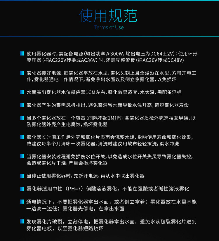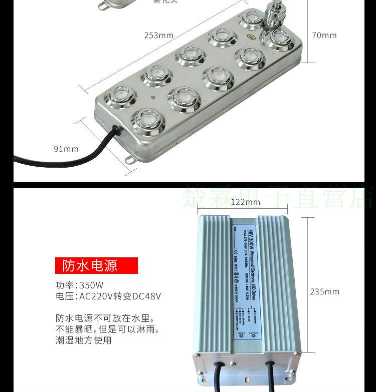 • 颜色分类:十头雾化器(250W) 防水电源(350W) 雾化器和电源 雾化器、电源和5米延长线 雾化器、电源和浮标 雾化器、电源、浮标和5米延长线