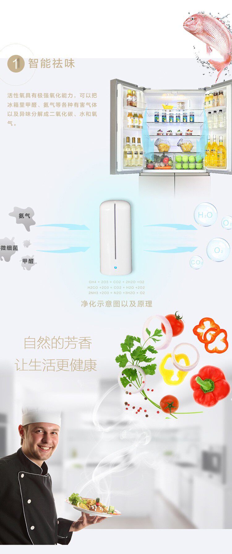 冰箱除味器活性氧空气净化器智能去异味厨房家用清新灭菌除臭器