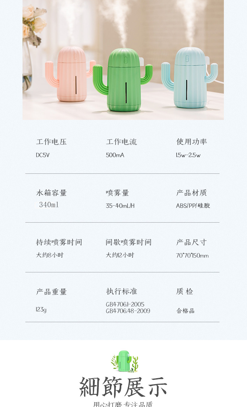 (64)[gotein旗舰店USB加湿器]充电款usb无线加湿器仙人掌便携式喷月销量99件仅售58元