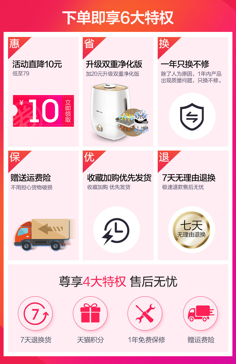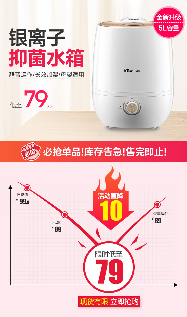 (82)[伟盛电器商城加湿器]空气加湿器家用静音卧室除螨杀菌大雾量月销量99件仅售288元