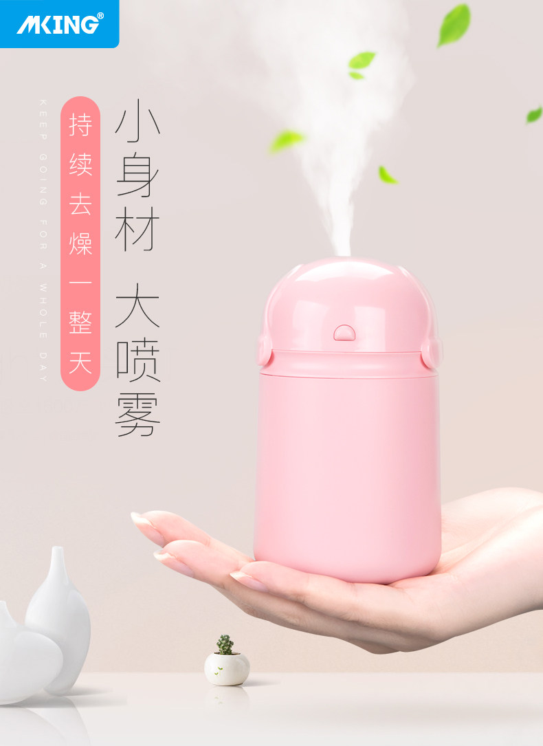身处北方,一到冬天就越发干燥,常常引发扁桃体炎啊上火之类的,再加上坐办公室要吹空调就更干了,在网上纠结了好久不知道该入手哪一款,偶然间看到这家,是只换不修的还挺有保障,就买来试了试,虽然不大但是放在办公桌上还是蛮合适的,吐雾量我基本满意,而且亲测不会打湿桌子文件,就是要多注意水量防止干烧,如果出一款可以看到水量的瓶身就更好了